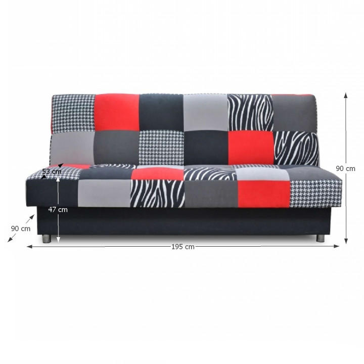 Rozkládací pohovka s úložným prostorem určená i na každodenní spaní Alabama. Kvalitní Bonelové výplň sedáku Materiál: látka Turkus, Barva: červená / šedá / černá Oděruodolnost textilie podle testu Martindale: 55 000 oděrek Rozměry (ŠxHxV): 195x90x90 cm, Plocha na spaní: 116x195 cm Nosnost na osobu: 90 kg Možnost objednat v provedení látka Turkus růžová, tyrkysová, limetková nebo červená v ceně 8.490,- Kč.