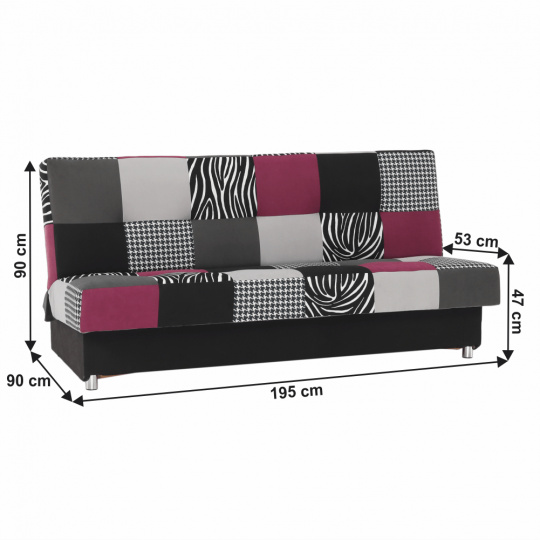Rozkládací pohovka s úložným prostorem určená i na každodenní spaní Alabama. Kvalitní Bonelové výplň sedáku Materiál: látka Turkus, Barva: růžová / šedá / černá Oděruodolnost textilie podle testu Martindale: 55 000 oděrek Rozměry (ŠxHxV): 195x90x90 cm, Plocha na spaní: 116x195 cm Nosnost na osobu: 90 kg Možnost objednat v provedení látka Turkus růžová, tyrkysová, limetková nebo červená v ceně 8.490,- Kč.