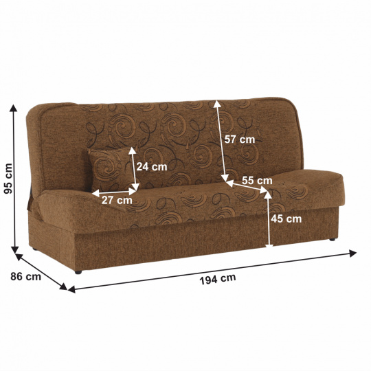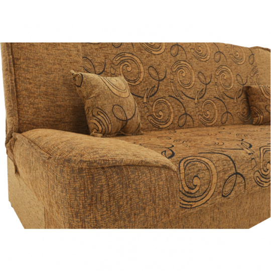 Rozkládací pohovka ASIA NEW Materiál: látka šenil Oděruodolnost textilie podle testu Martindale: 65 000 oděrek Barva: zlatá / vzor Rozměry ŠxHxV: 194x86x95 cm, plocha na spaní: ŠxD: 120x194 cm Nosnost na osobu: 90 kg Dva dekorativní polštáře Úložný prostor. Dodávané v demontu.