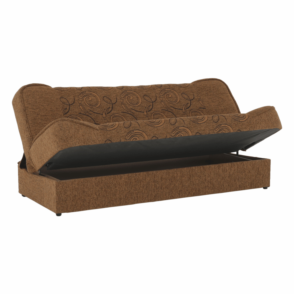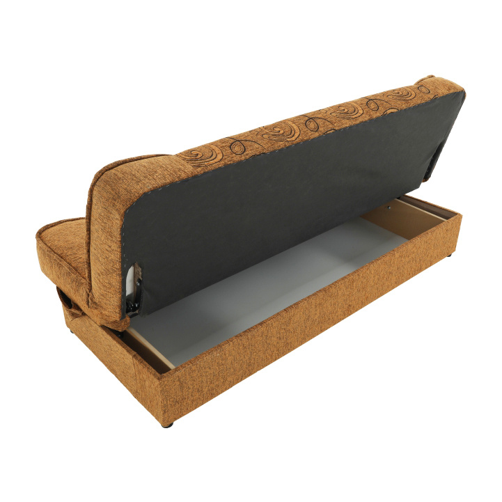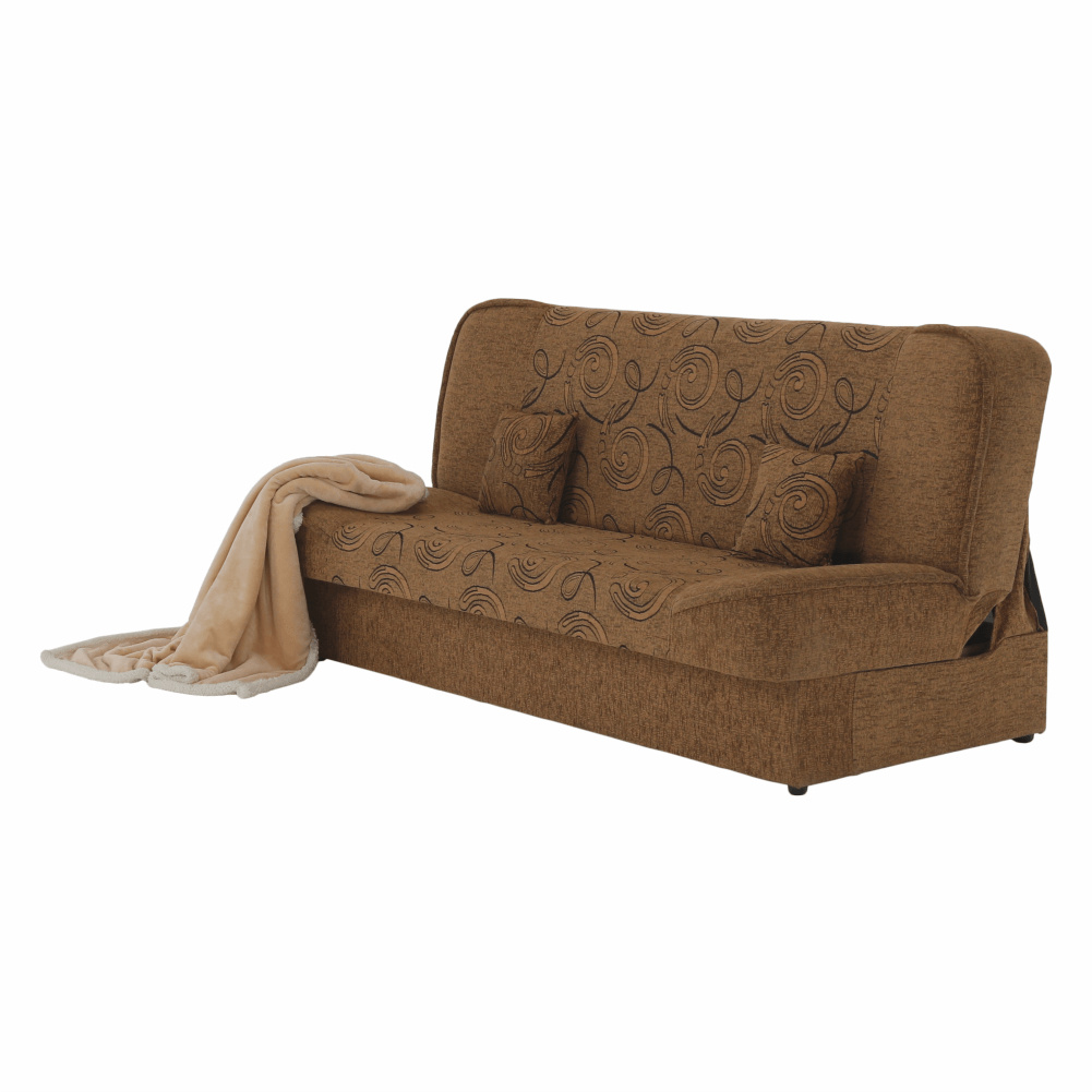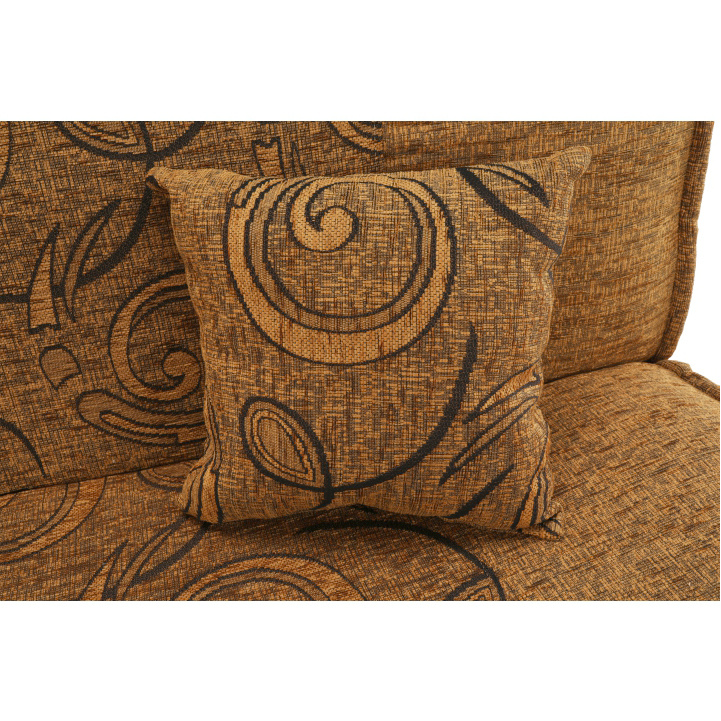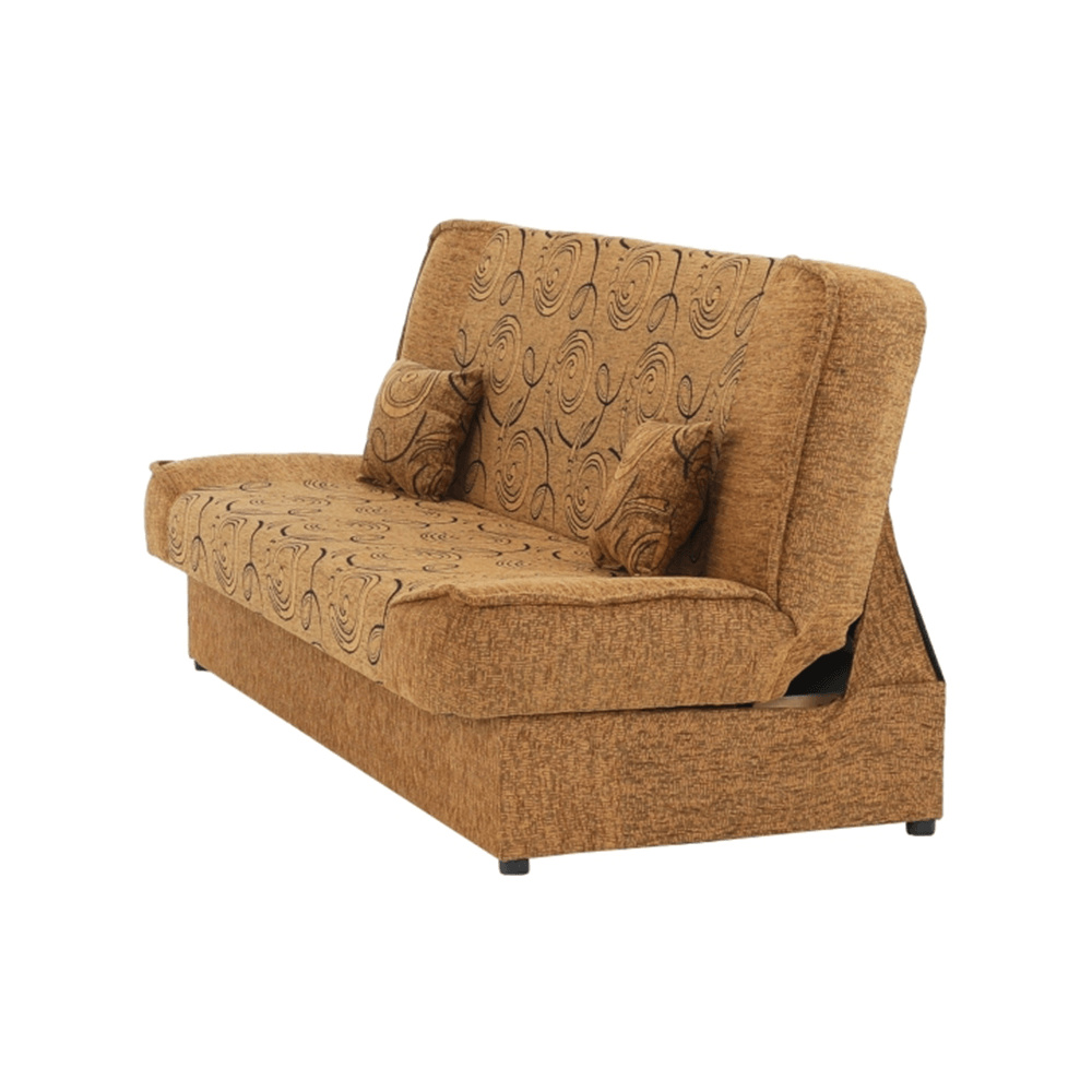 Rozkládací pohovka ASIA NEW Materiál: látka šenil Oděruodolnost textilie podle testu Martindale: 65 000 oděrek Barva: zlatá / vzor Rozměry ŠxHxV: 194x86x95 cm, plocha na spaní: ŠxD: 120x194 cm Nosnost na osobu: 90 kg Dva dekorativní polštáře Úložný prostor. Dodávané v demontu.