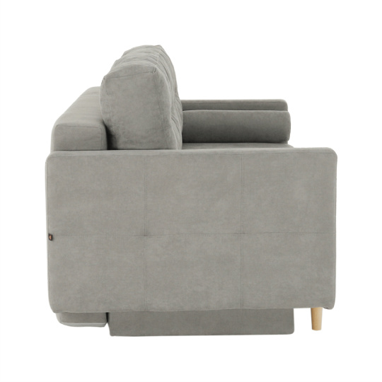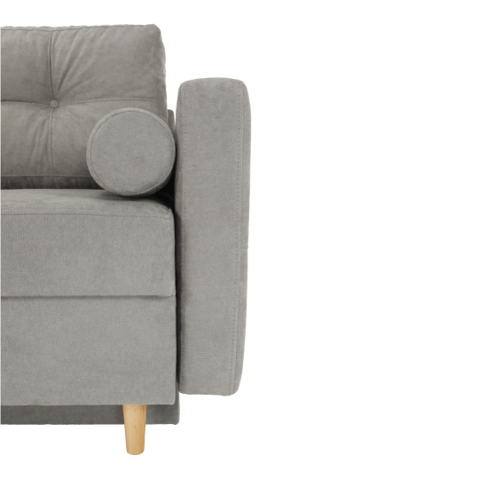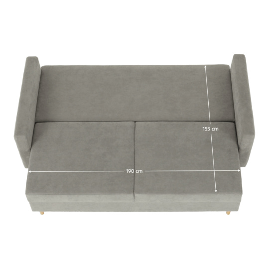 Materiál: látka Queens 21 Oděruodolnost textilie podle testu Martindale: 30 000 oděrů Barva: šedá Rozměry (ŠxHxV): 216x100x93 cm Rozkládací Plocha na spaní (ŠxD): 190x155 cm Výška sedu: 46 cm Hloubka sedu s polštáři: 50 cm Hloubka sedu bez polštářů: 80 cm Výška nožiček: 13 cm Výška pevné části vzadu: 74 cm Nosnost na osobu: 90 kg Celočalouněná Bonelová výplň sedáku Skandinávský styl Úložný prostor Dva opěradlové polštáře Dva dekorativní polštáře ve tvaru válce Určena také ke každodennímu spaní Dodáváno v demontu