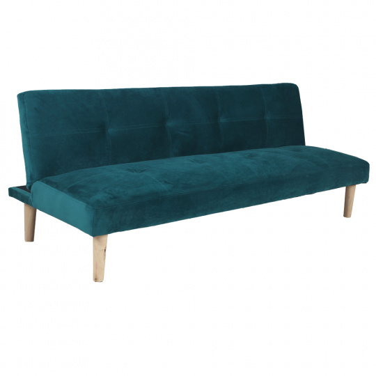 Materiál čalounění: Velvet látka Oděruodolnost textilie podle testu Martindale: 80 000 oděrek Barva čalounění: smaragdová Materiál nohy: dřevo Barva nohy: dub Rozměry (ŠxHxV): 178x68x66 cm rozkládací Plocha na spaní (ŠxHxV): 178x84x34 cm Výška sedu: 34 cm Hloubka sedu: 44 cm Nosnost: 90 kg moderní design Molitanová výplň sedáku Dřevěné nožičky Dodávané v demontu