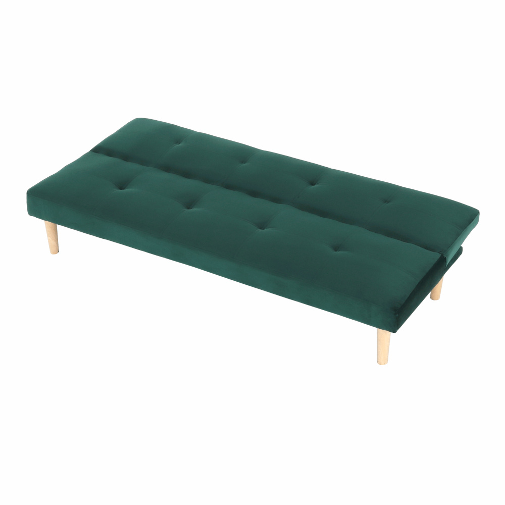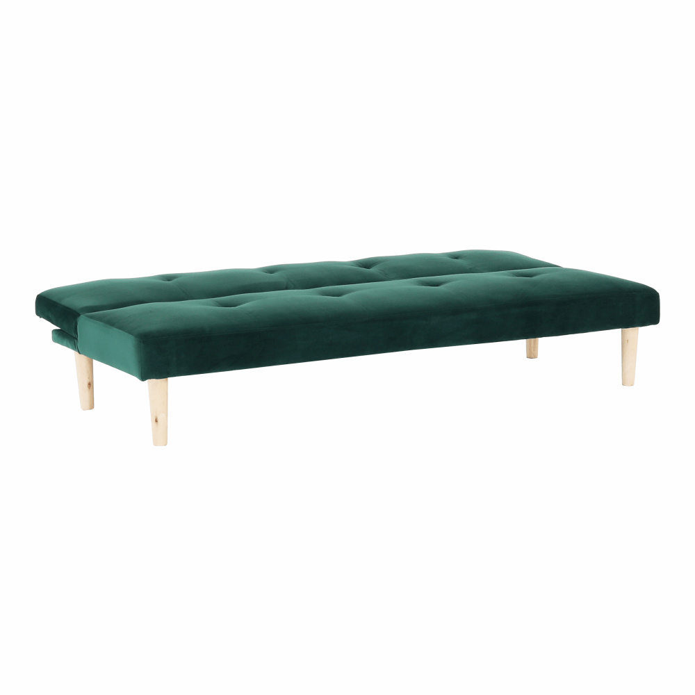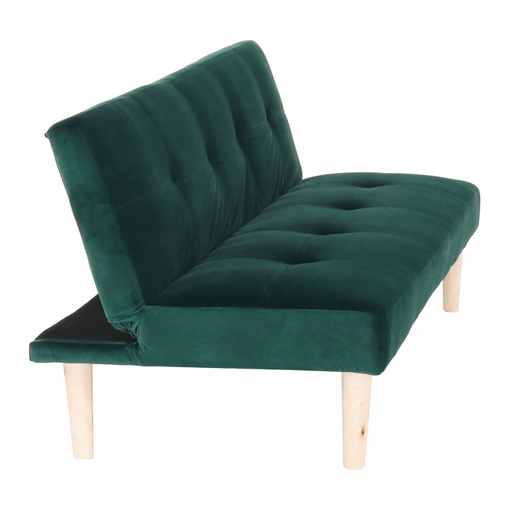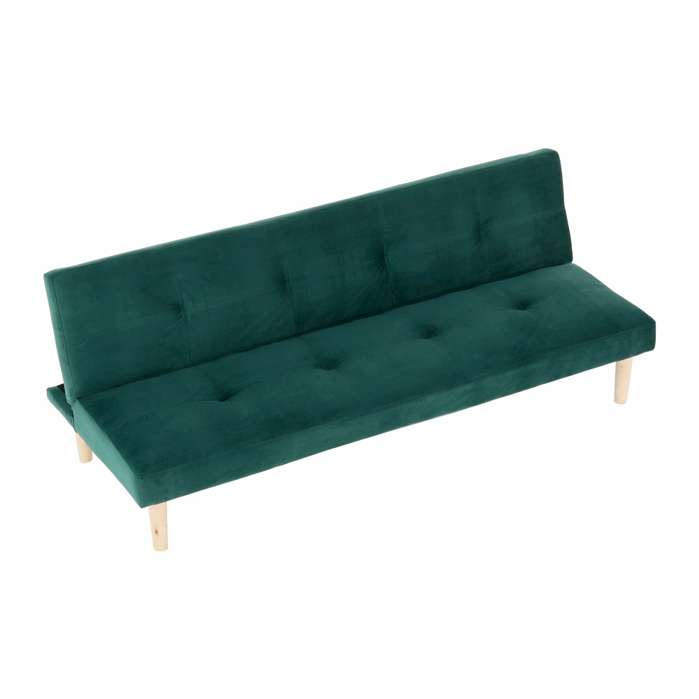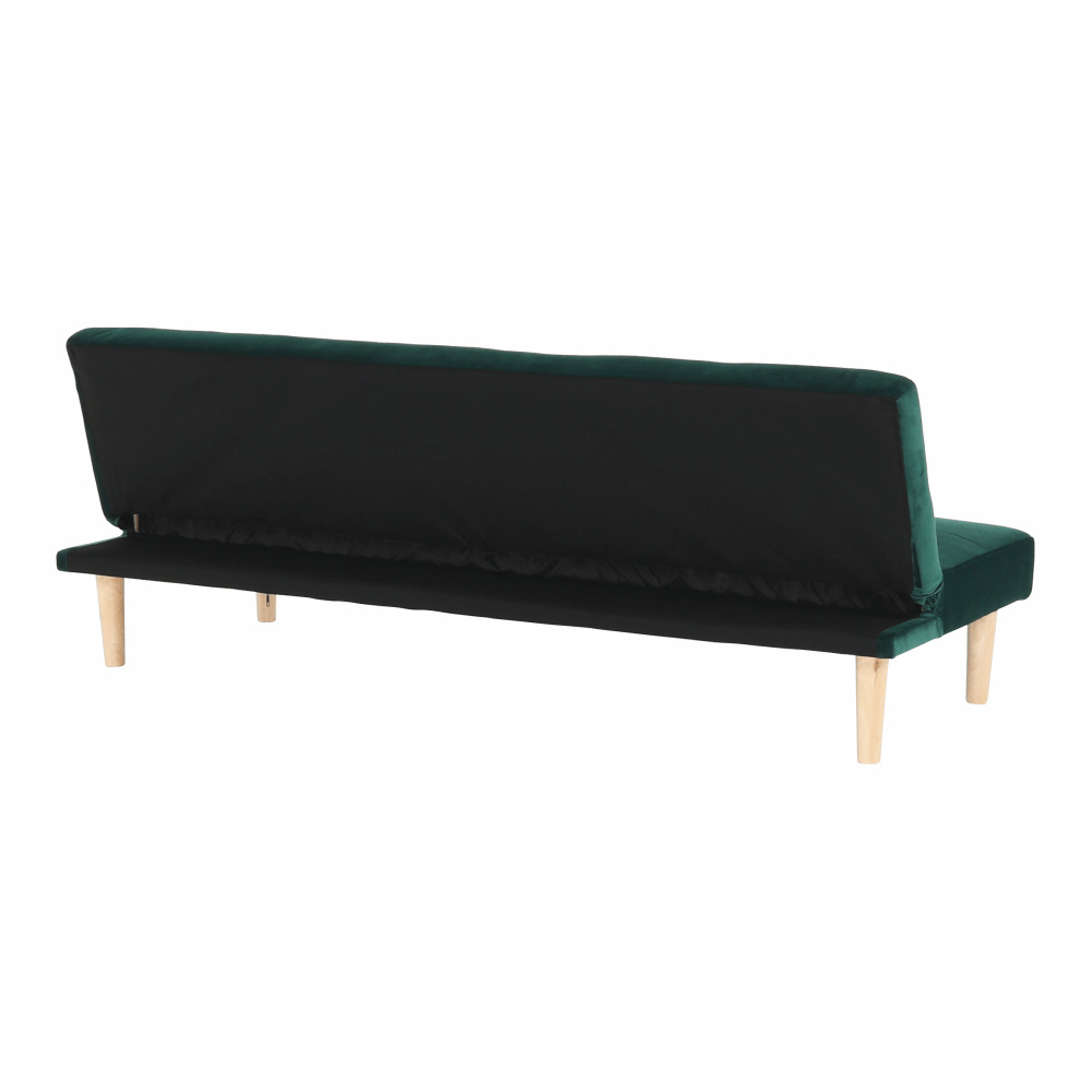 Materiál čalounění: Velvet látka Oděruodolnost textilie podle testu Martindale: 80 000 oděrek Barva čalounění: smaragdová Materiál nohy: dřevo Barva nohy: dub Rozměry (ŠxHxV): 178x68x66 cm rozkládací Plocha na spaní (ŠxHxV): 178x84x34 cm Výška sedu: 34 cm Hloubka sedu: 44 cm Nosnost: 90 kg moderní design Molitanová výplň sedáku Dřevěné nožičky Dodávané v demontu