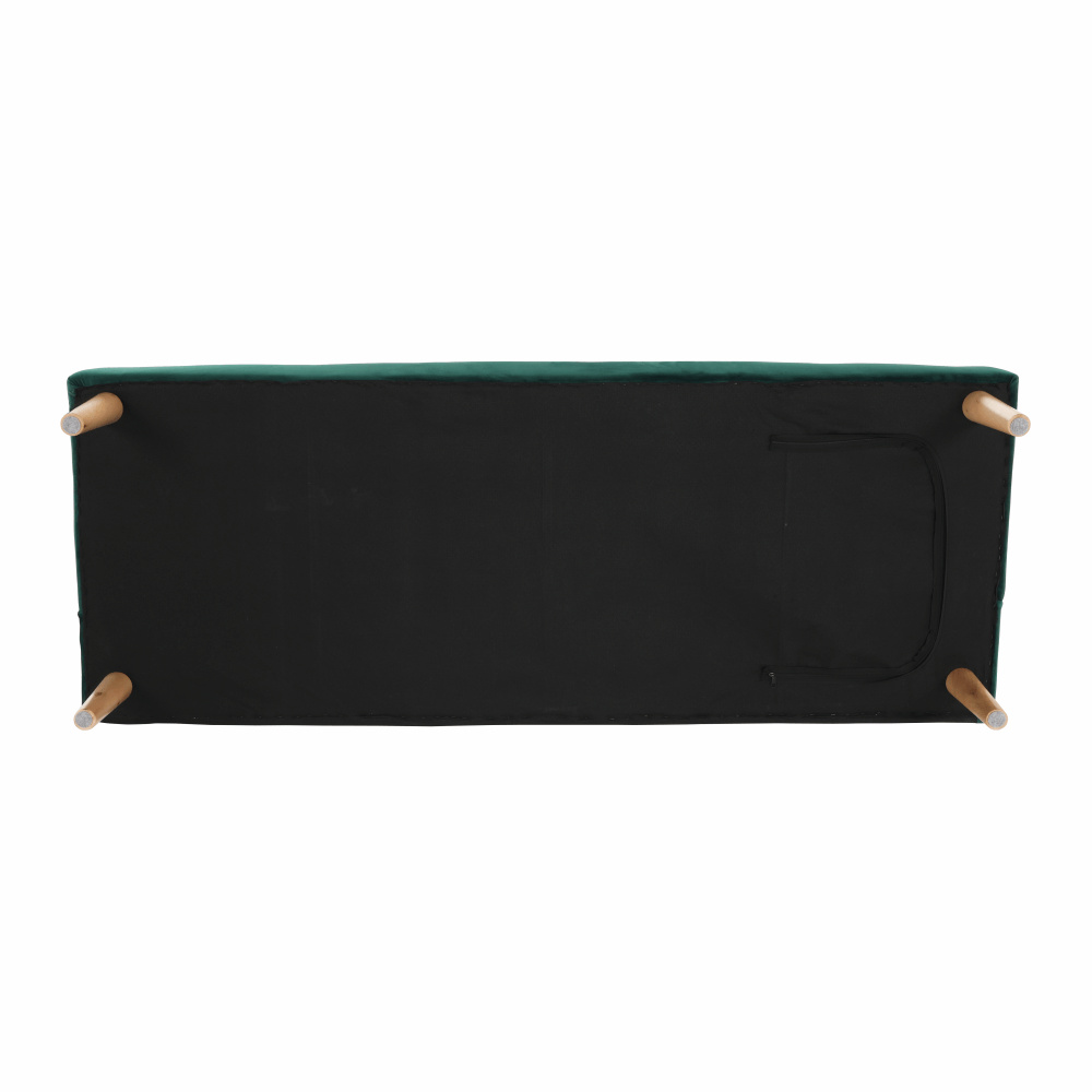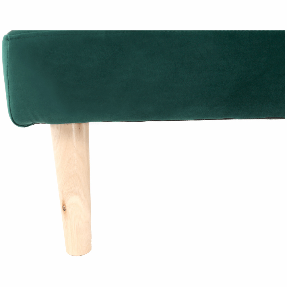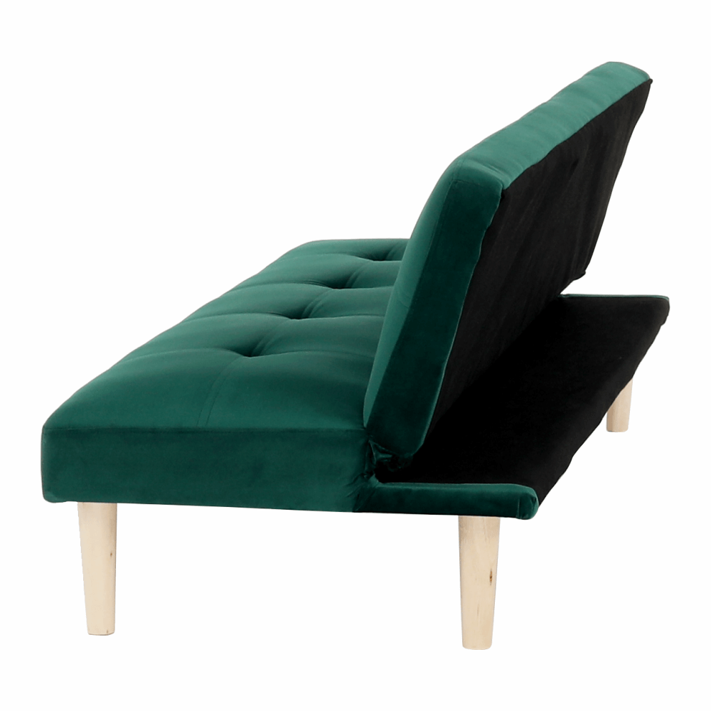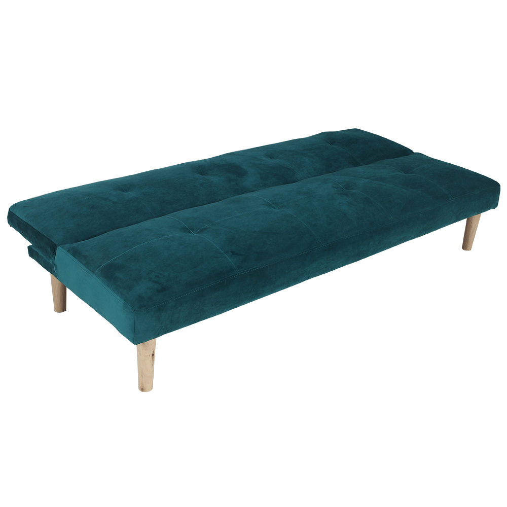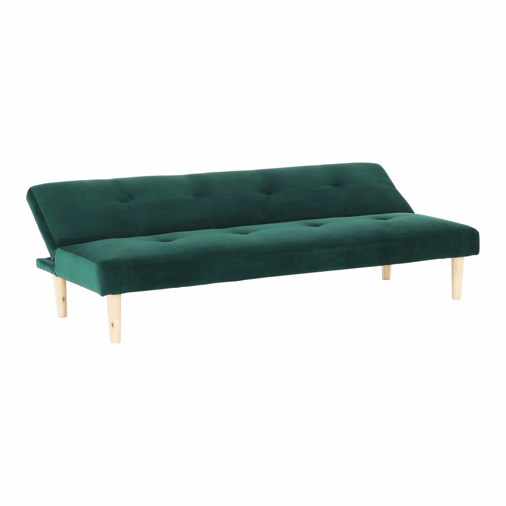 Materiál čalounění: Velvet látka Oděruodolnost textilie podle testu Martindale: 80 000 oděrek Barva čalounění: smaragdová Materiál nohy: dřevo Barva nohy: dub Rozměry (ŠxHxV): 178x68x66 cm rozkládací Plocha na spaní (ŠxHxV): 178x84x34 cm Výška sedu: 34 cm Hloubka sedu: 44 cm Nosnost: 90 kg moderní design Molitanová výplň sedáku Dřevěné nožičky Dodávané v demontu