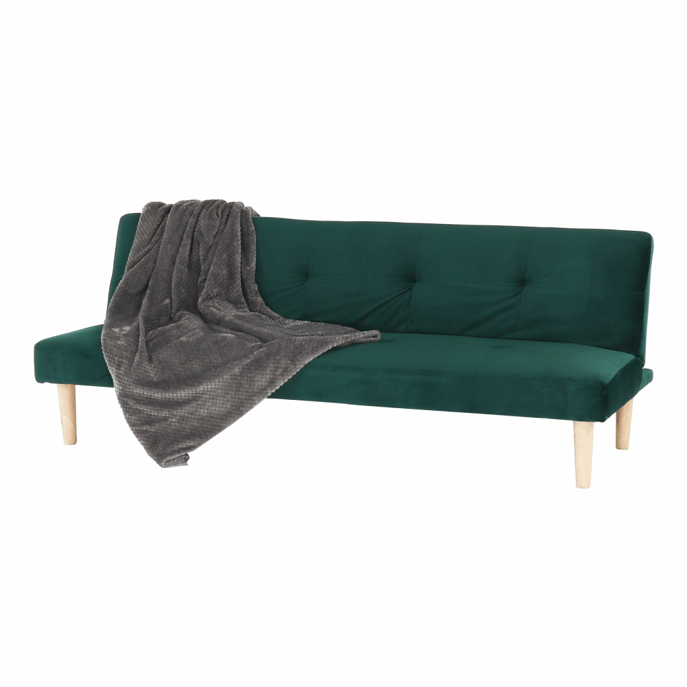 Pohovka rozkládací, smaragdová Velvet látka/dub, ALIDA