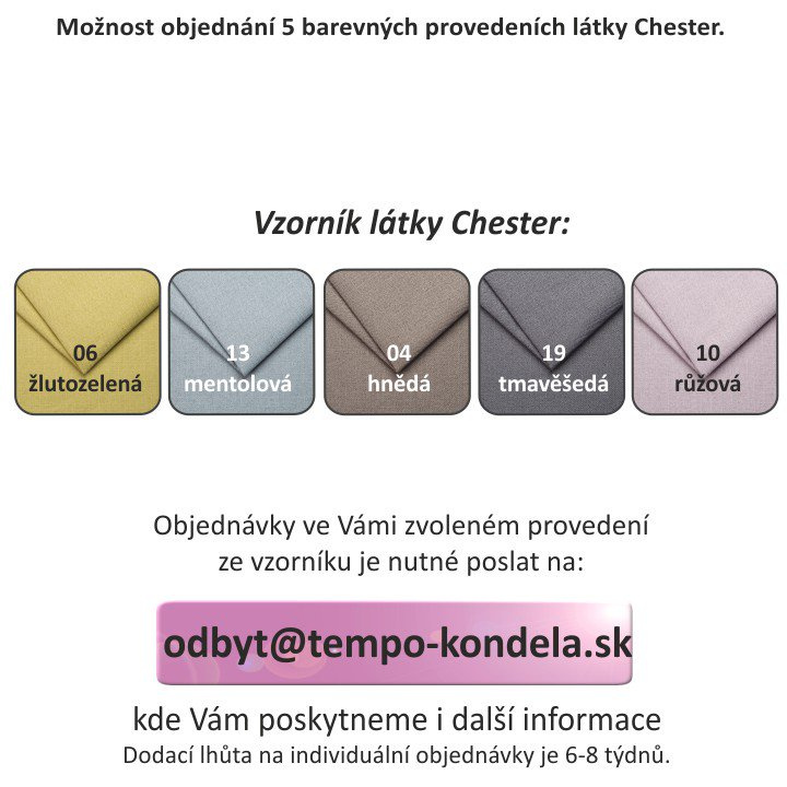 ;"Stylová pohovka BROKEN Materiál: látka Chester / dřevo Oděruodolnost textilie podle testu Martindale: 100 000 oděrek Barva: Chester 17 šedá / buk Rozměry (ŠxHxV): 144x76x67 cm Výška spodního prostoru od podlahy: 13 cm Výška sedu: 41 cm Hloubka sedu: 53 cm Nosnost na osobu: 90 kg Pravé provedení. Molitanová výplň. Dodávané v demontu. Možnost objednání v 5 barevných provedeních látky Chester v ceně pohovka: 7.050 Kč, taburet 3.190 Kč. Při individuální objednávce je třeba zaplatit 20% zálohu z dané částky. Po uhrazení zálohy bude Vaša objednávka zadána do výroby. Dodací lhůta 6-8 týdnů.