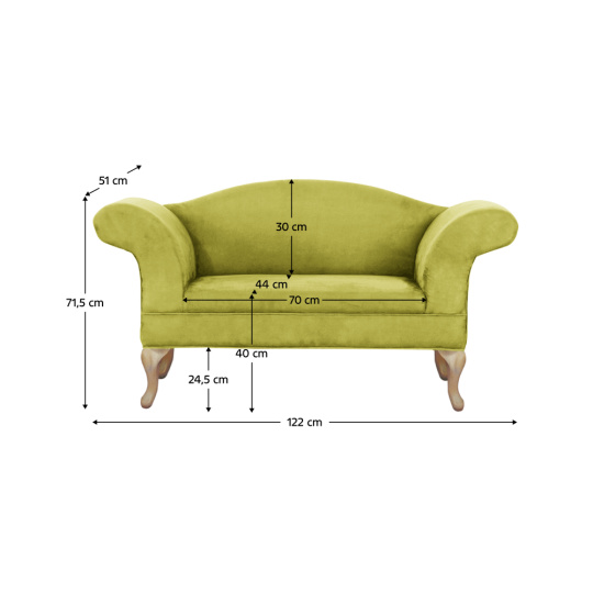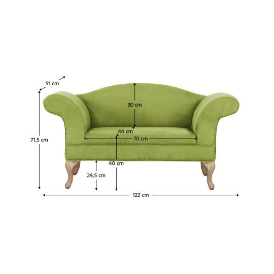 Stylová jedinečná pohovka na dřevěných nožkách s rustikálním vzhledem. Materiál: látka / dřevo Oděruodolnost textilie podle testu Martindale: 100 000 oděrek Barevné provedení: zelená / dub Pěnová výplň sedáku. Rozměry (ŠxHxV): 122x51x71,5 cm. Vnitřní šířka pohovky: 70 cm. Výška sedu: 40 cm. Nosnost: 90 kg