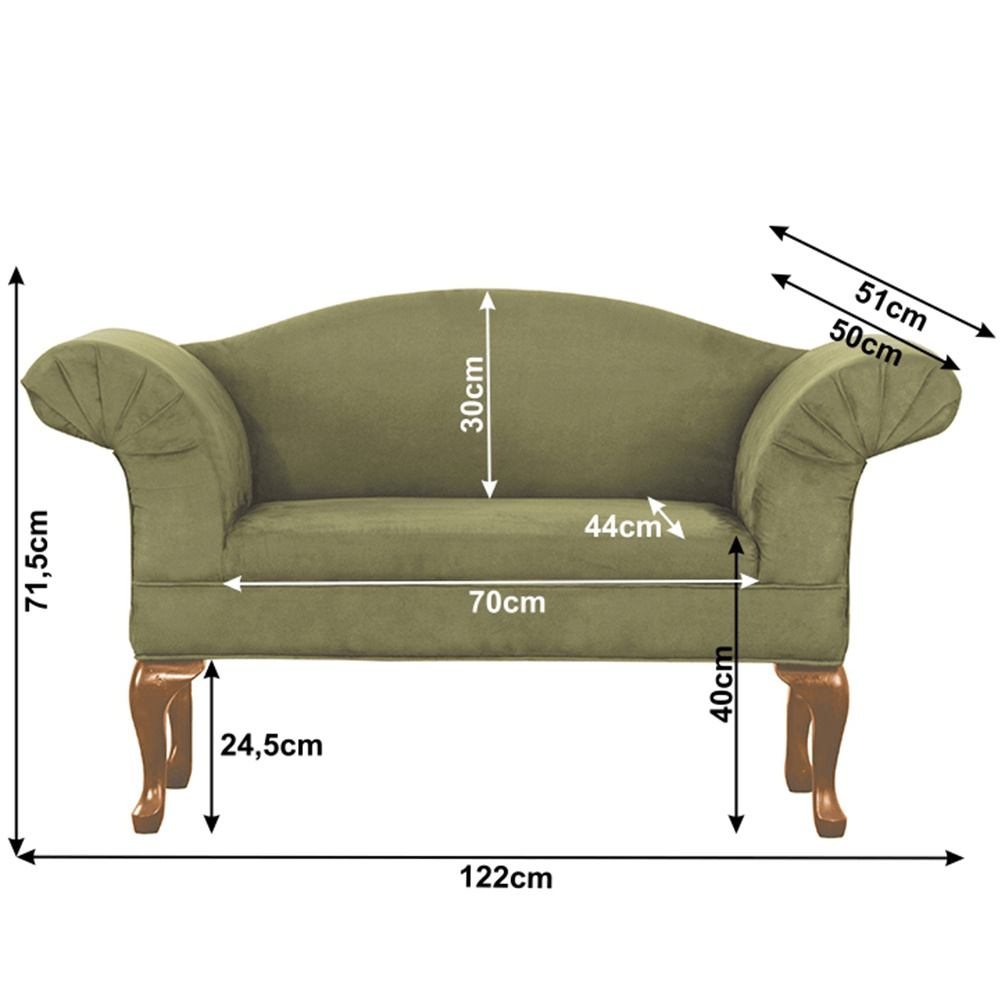 Stylová jedinečná pohovka na dřevěných nožkách s rustikálním vzhledem. Materiál: látka / dřevo Oděruodolnost textilie podle testu Martindale: 100 000 oděrek Barevné provedení: zelená / dub Pěnová výplň sedáku. Rozměry (ŠxHxV): 122x51x71,5 cm. Vnitřní šířka pohovky: 70 cm. Výška sedu: 40 cm. Nosnost: 90 kg