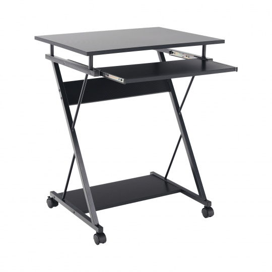 Materiál: DTD fóliovaná / kov Barva: černá Rozměry (ŠxHxV): 60x48x73 cm S policí S výsuvem na klávesnici pojízdný na kolečkách Jako PC stůl Jako herní stůl Dodávané v demontu