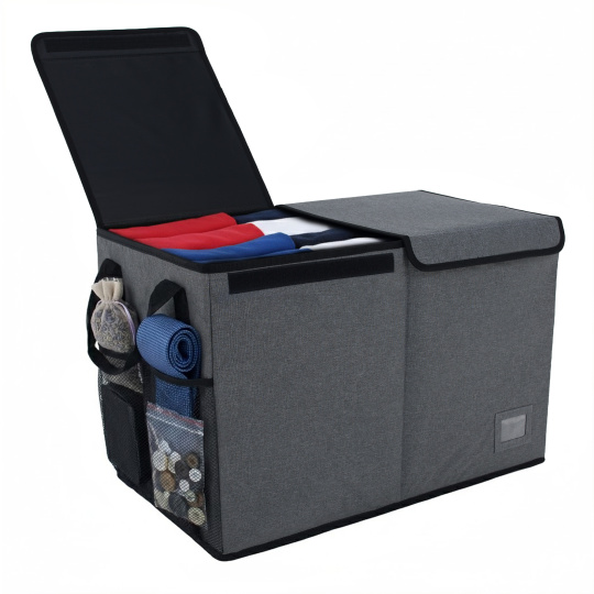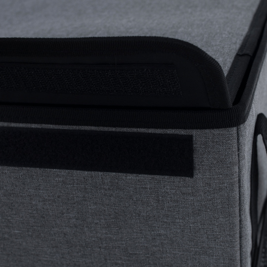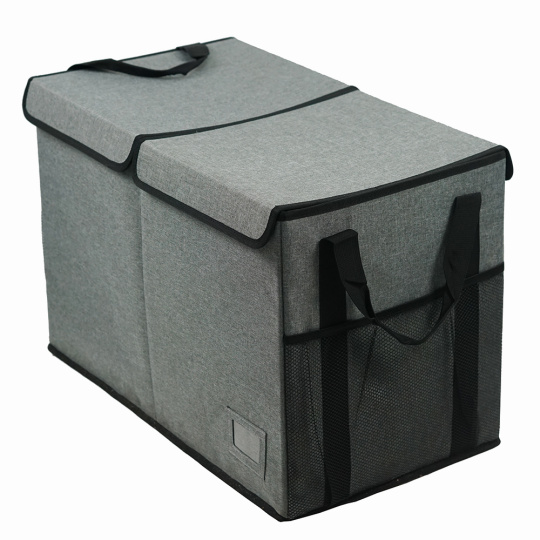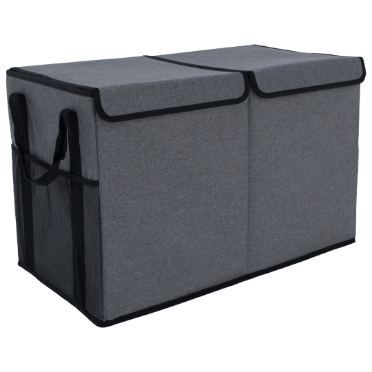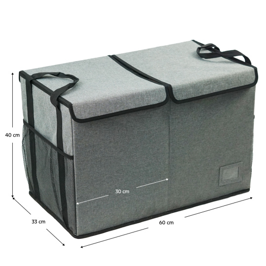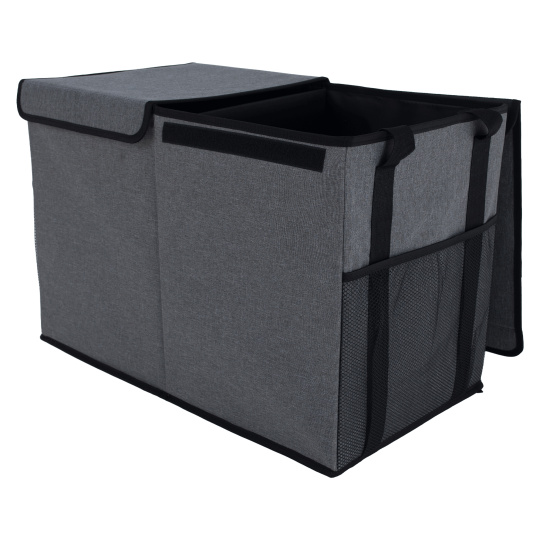 Materiál: látka Barva: šedá/černá Rozměry (ŠxHxV): 60x33x40 cm Všestranné využití Přenosný S oušky Skládací Jednoduché uskladnění Šetření místa Síťové kapsy na bocích Uzavíratelný Suchý zip pro zavírání Udržuje pořádek Pomáhá při organizaci Praktický Neprat, nebělit, nežehlit, nečistit chemicky, nesušit v sušičce