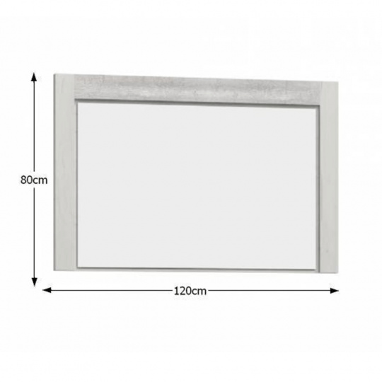 Zrcadlo 12 z luxusního sektorového nábytku. Materiál DTD laminovaná, ABS hrany, barevné provedení: jasan bílý Rozměry ŠxV: 120x80 cm. Tloušťka materiálu: 16 mm Dodávané v demontu.