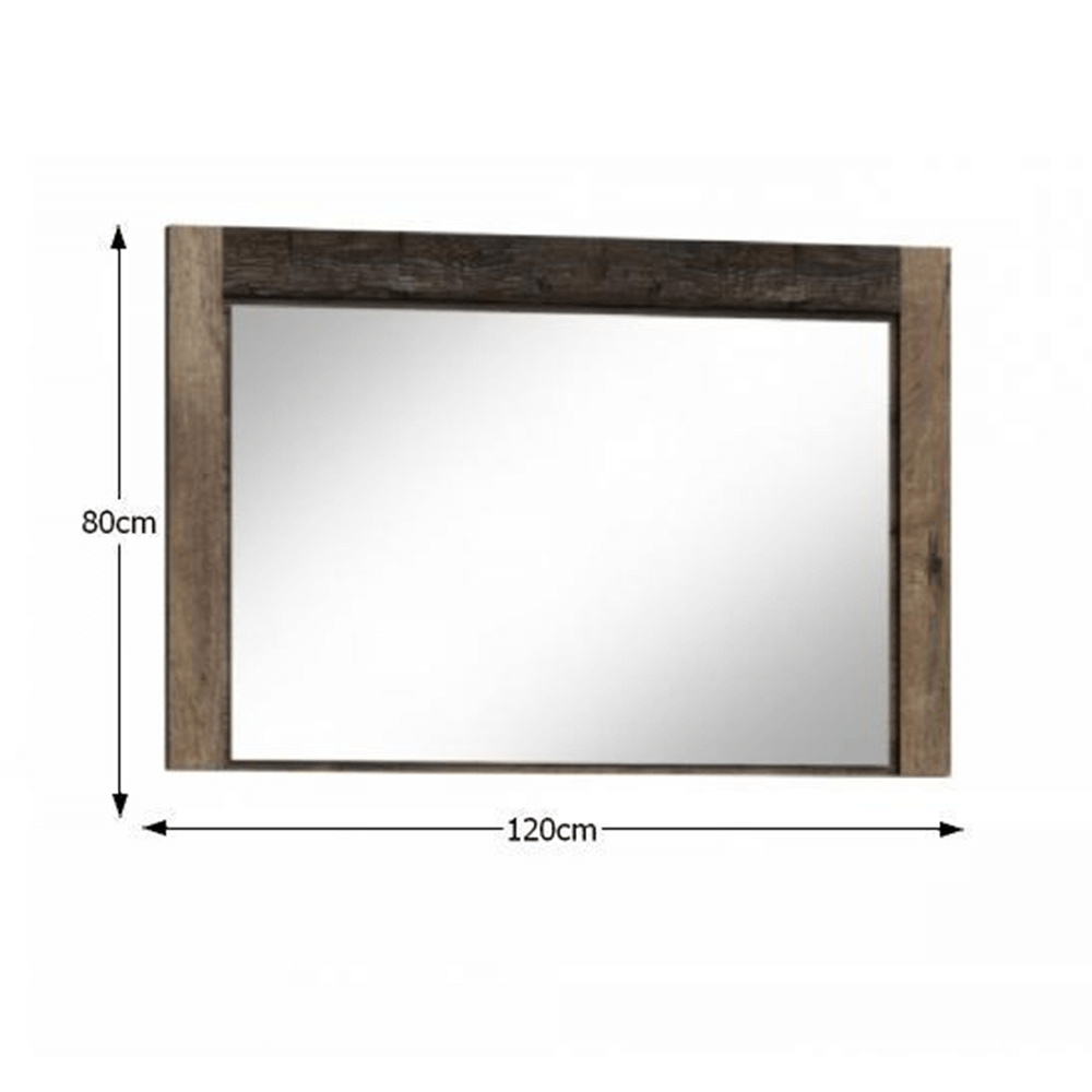 Zrcadlo 12 z luxusního sektorového nábytku. Materiál DTD laminovaná, ABS hrany, barevné provedení: jasan tmavý. Rozměry ŠxV: 120x80 cm. Tloušťka materiálu: 16 mm Dodávané v demontu.