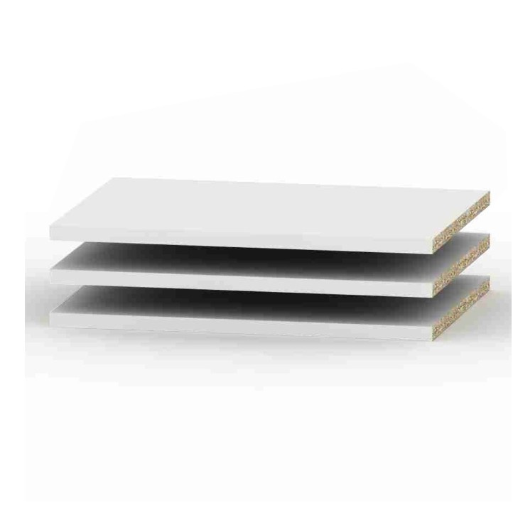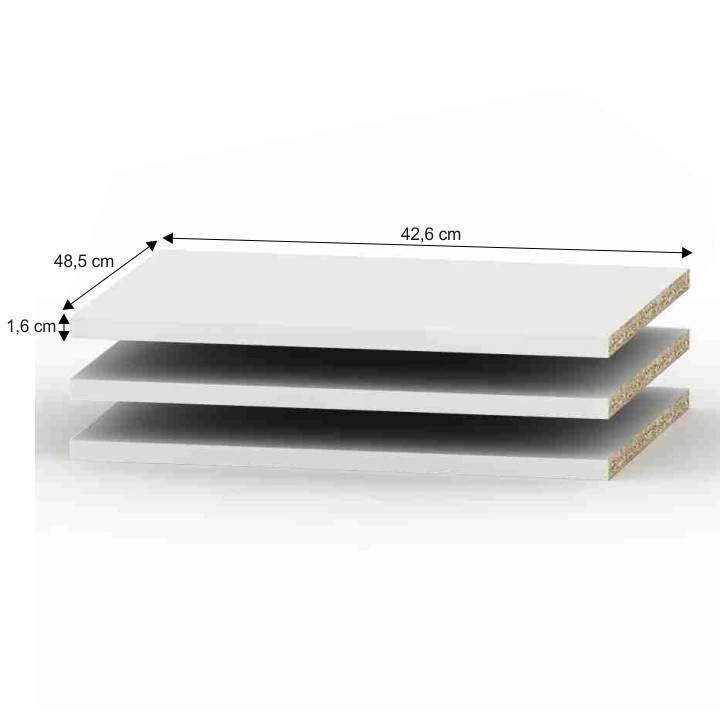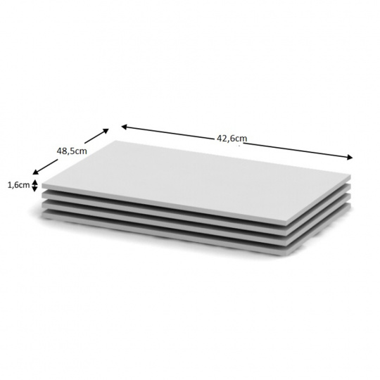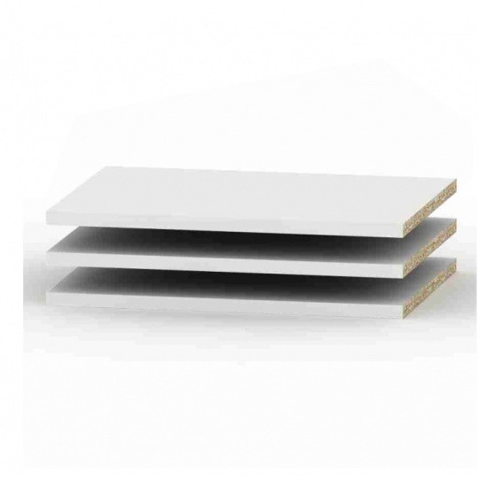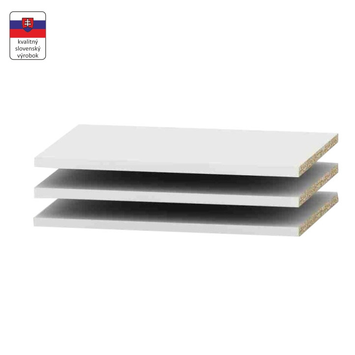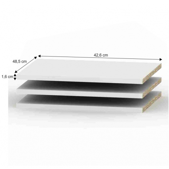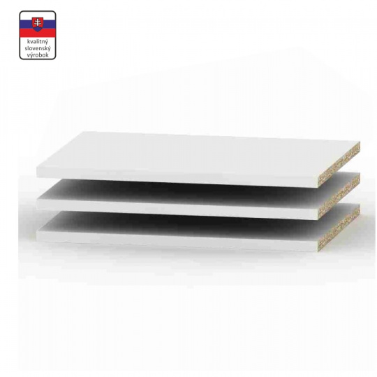 Police BETTY 4 4ks Materiál: DTD laminovaná Barva: bílá Rozměry (ŠxHxV): 42,6x48,5x1,6 cm Tloušťka materiálu korpus: 16 mm Součástí balení jsou i podpěrky na police