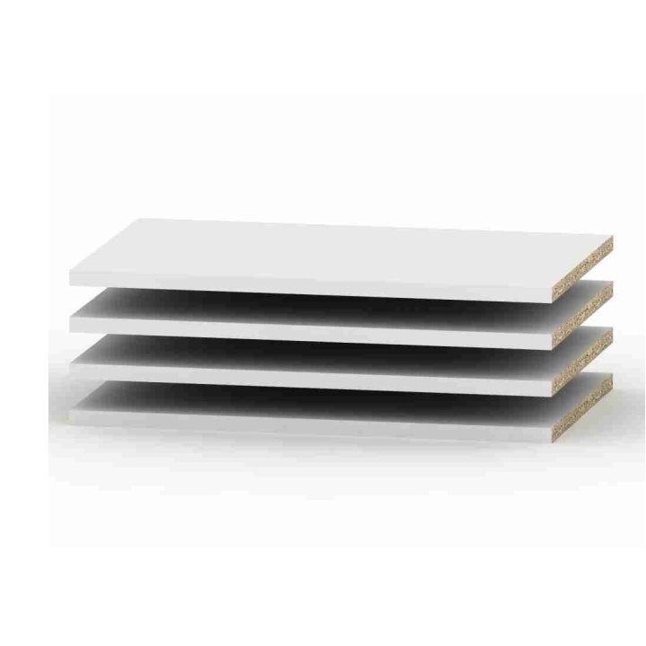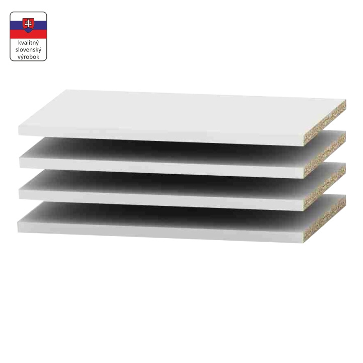 Police BETTY 4 4ks Materiál: DTD laminovaná Barva: bílá Rozměry (ŠxHxV): 49,9x32,5x1,6 cm Tloušťka materiálu korpus: 16 mm Součástí balení jsou i podpěrky na police