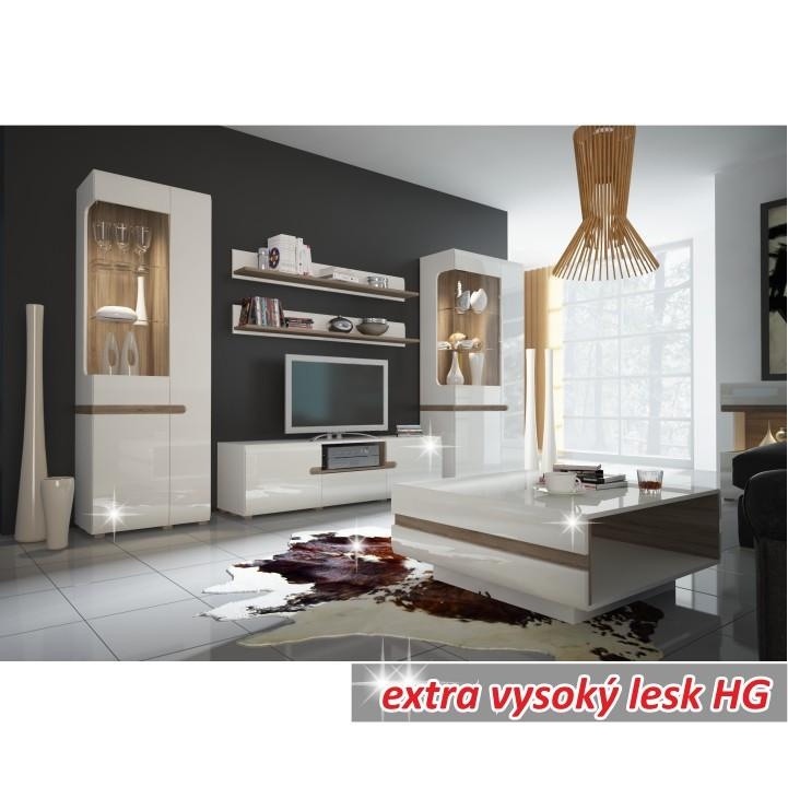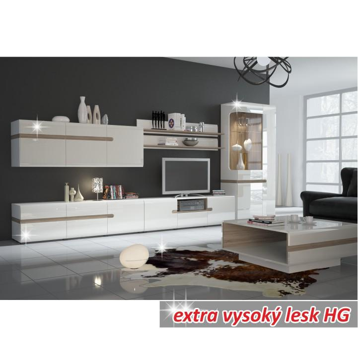 Police, bílá extra vysoký lesk HG/dub sonoma tmavý truflový, LYNATET TYP 60