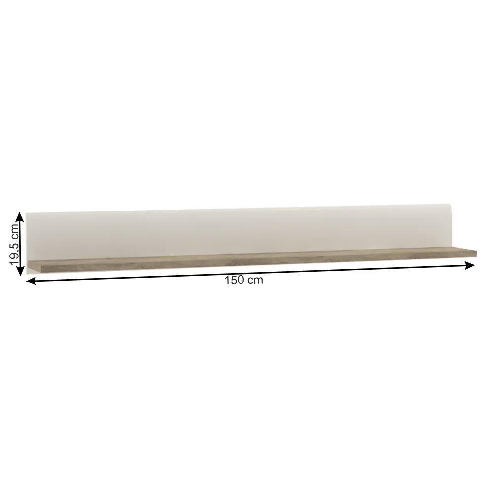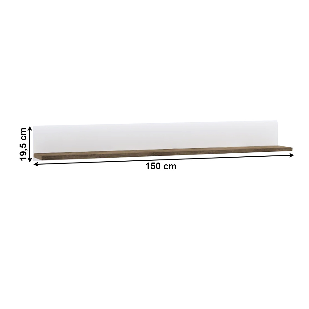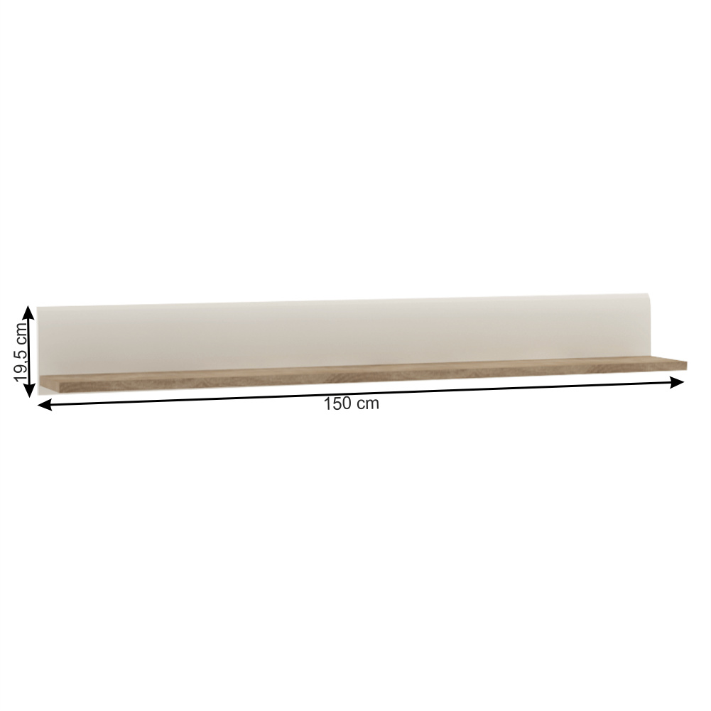 Police, bílá extra vysoký lesk HG/dub sonoma tmavý truflový, LYNATET TYP 60 Materiál: laminovaná DTD Barva: dub sonoma truflový/bílá s extra vysokým leskem Rozměry (ŠxHxV): 150x20x19,5 cm Tloušťka materiálu: 16 mm Korpus je v matném provedení Nosnost: 3kg Dodáváno v demontu