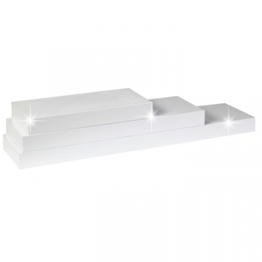 Police, která se stává součástí stěny díky skrytému nástěnnému kování. Materiál: MDF Provedení: černý lesk Rozměry ŠxHxV: 30x25x5 cm. Nosnost police je 5-8 kg Hmotnost: 14.5kg