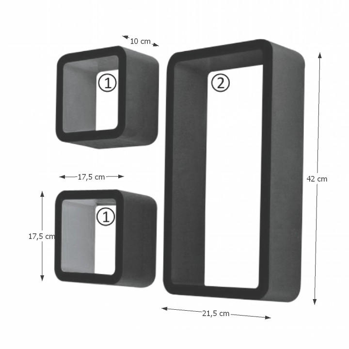 Sada polic - 3 ks, Materiál: MDF Barva: černá Rozměry ŠxHxV: 1 - 2x17,5x10x17,5 cm, 2 - 1x42x10x21,5 cm. Cena je za sadu polic - 3 ks.