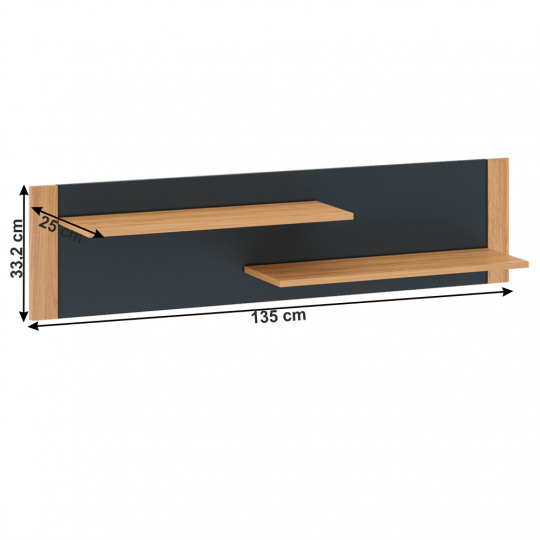 Materiál: DTD laminovaná Barva: dub craft zlatý / grafit šedá Rozměry (ŠxHxV): 135x25x33,2 cm Tloušťka materiálu: 16 mm Dodávané v demontu