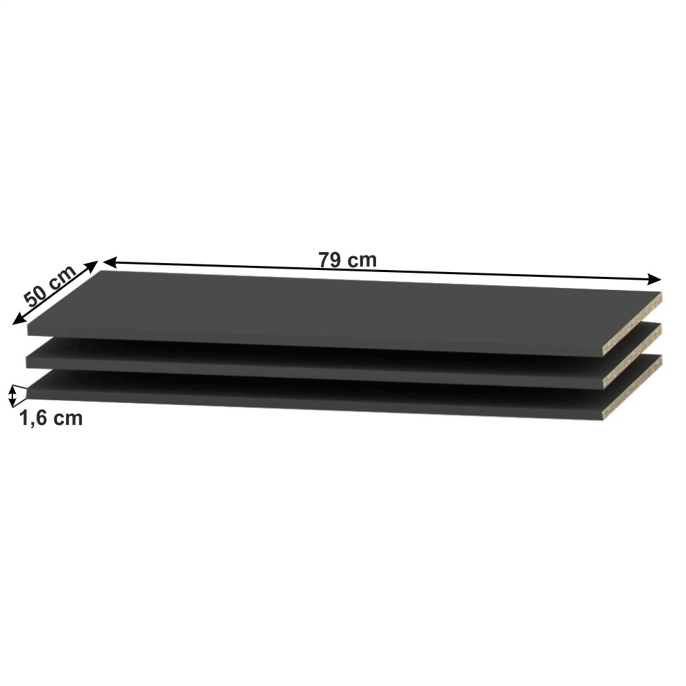 Materiál: DTD laminovaná Barva: černá Rozměry (ŠxHxV): 79x50x1,6 cm 3 kusy