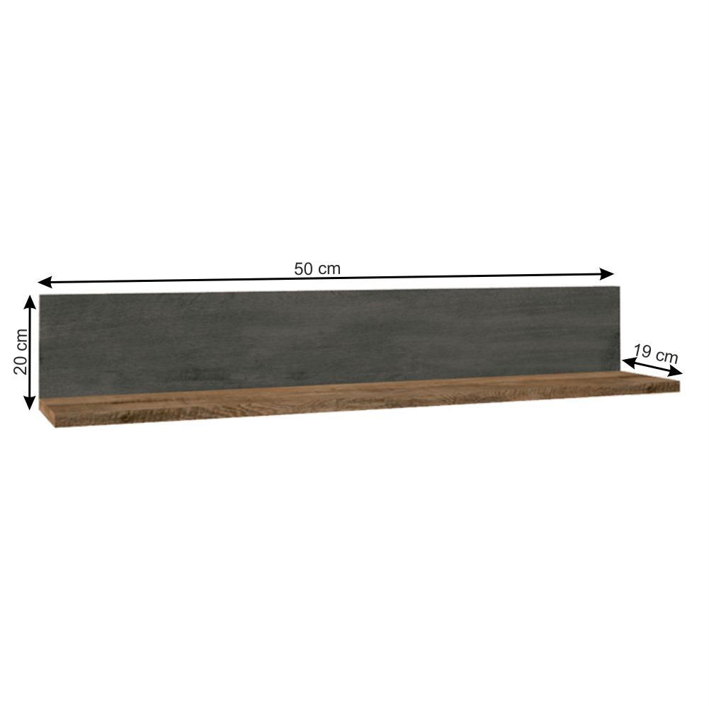 Police P1, MONTANA Materiál: DTD laminovaná Barevné provedení: dub lefkas tmavý / smooth šedý Rozměry (ŠxHxV): 130x19x20 cm Tloušťka materiálu: 15 mm Dodávané v demontu.