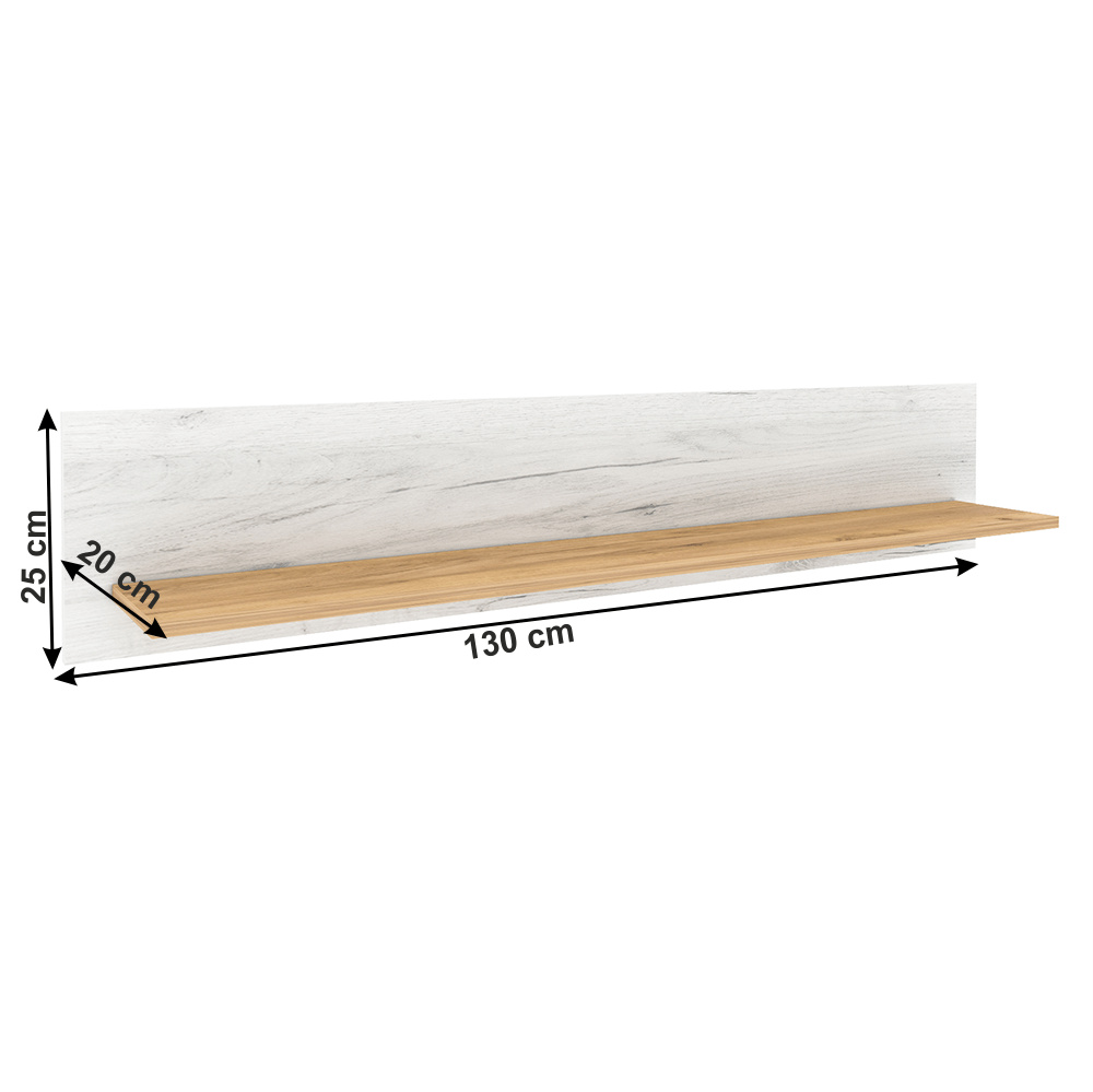 Materiál: DTD laminovaná Barva: dub craft zlatý / dub craft bílý Rozměry (ŠxHxV): 130x20x25 cm Tloušťka materiálu: 16 mm Dodávané v demontu