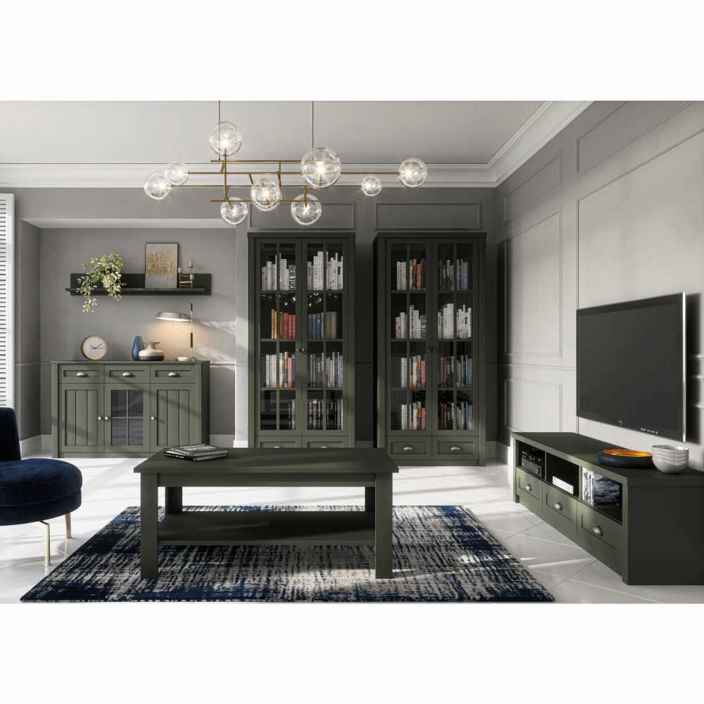 Materiál: DTD laminovaná Barva: zelená Rozměry (ŠxHxV): 130x20x20 cm Tloušťka materiálu korpus: 15 mm Otevřený úložný prostor Dodávané v demontu.