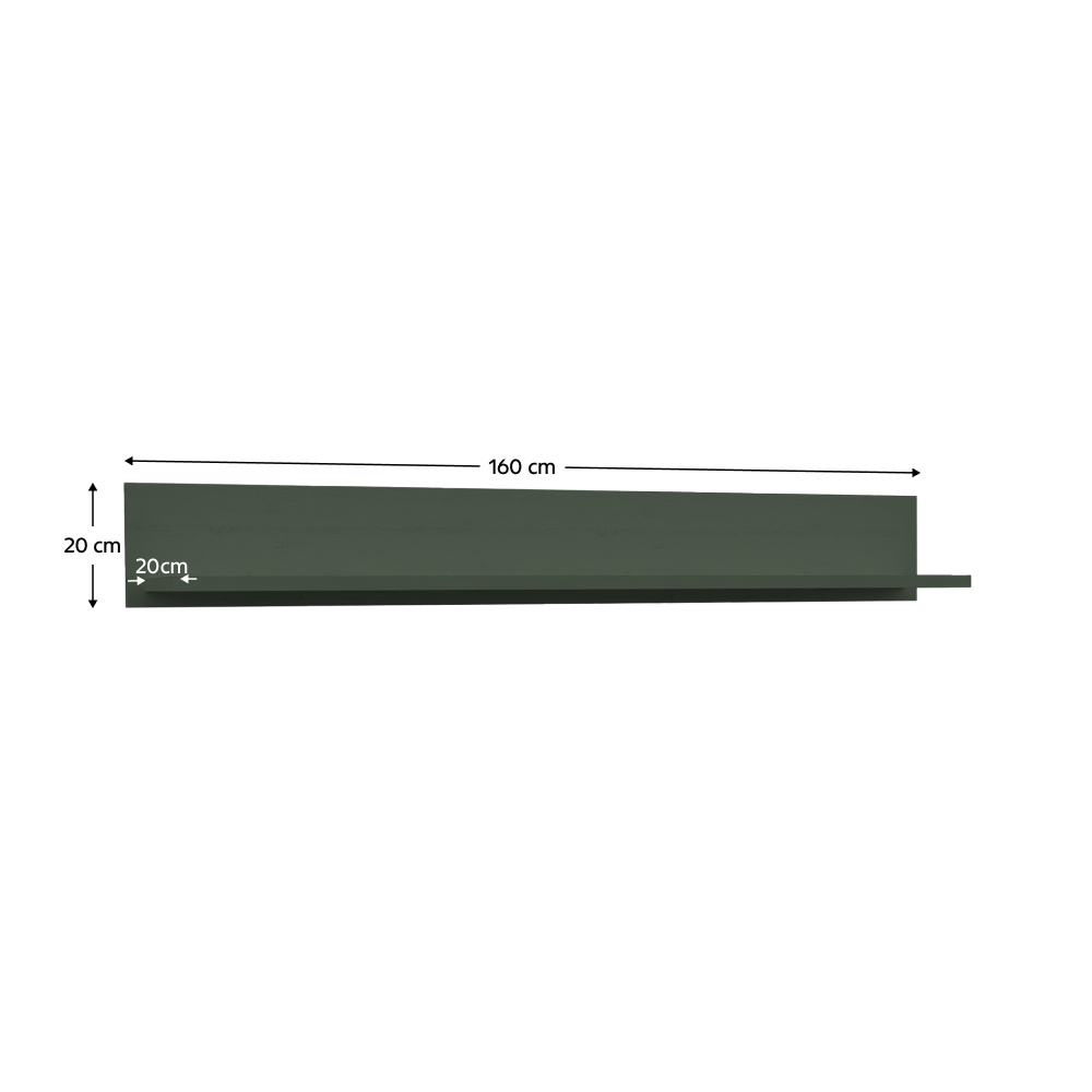Materiál: DTD laminovaná Barva: zelená Rozměry (ŠxHxV): 160x20x20 cm Tloušťka materiálu korpus: 15 mm Otevřený úložný prostor Dodávané v demontu.