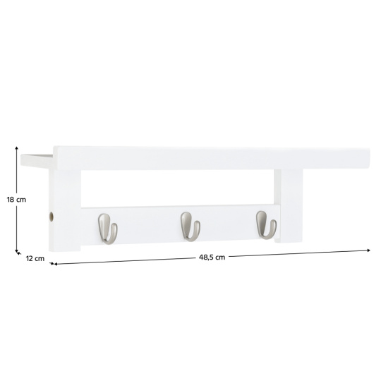 Materiál: bambus lakovaný / ocel Barva: bílá Rozměry (ŠxHxV): 48,5x12x18 cm Tři háčky Police Nosnost: 10 kg Vhodná do koupelny a předsíně