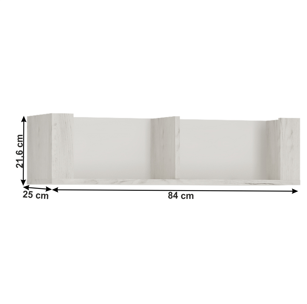 Police typ 62 ze sektorové sestavy ANGEL vhodná na zařízení dětských a studentských pokojů, materiál: DTD lamonovaná, barevné provedení: bílá craft. rozměry (ŠxVxH): 84x21,6x25 cm, Tloušťka materiálu: 16 mm, dodávané v demontu