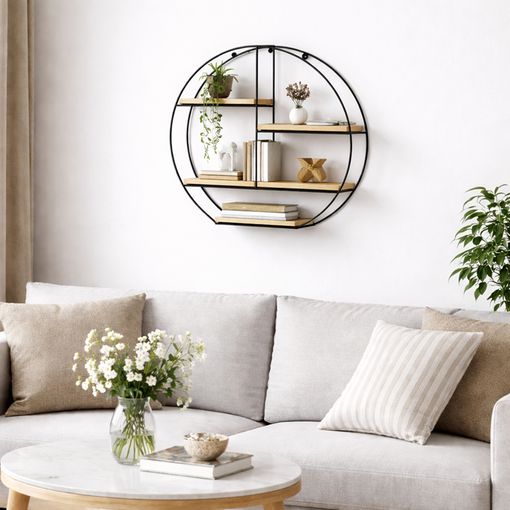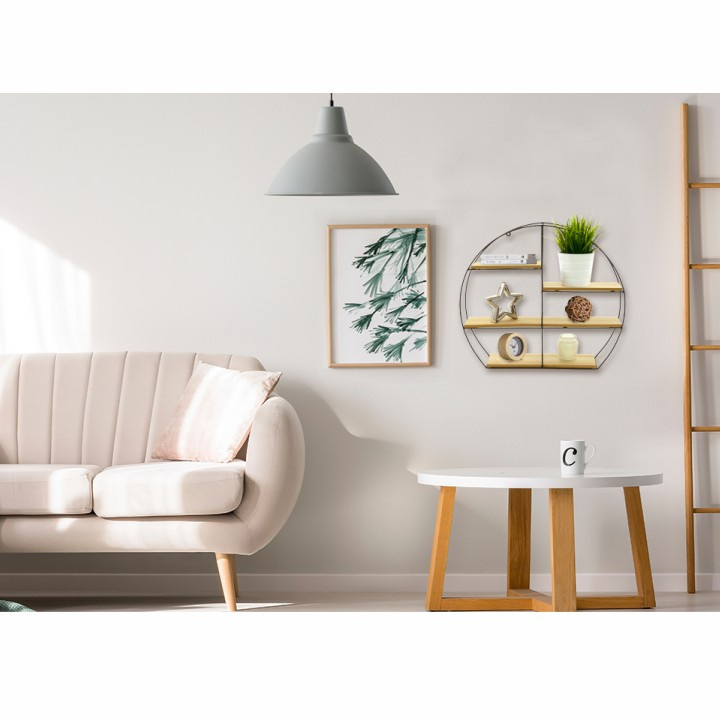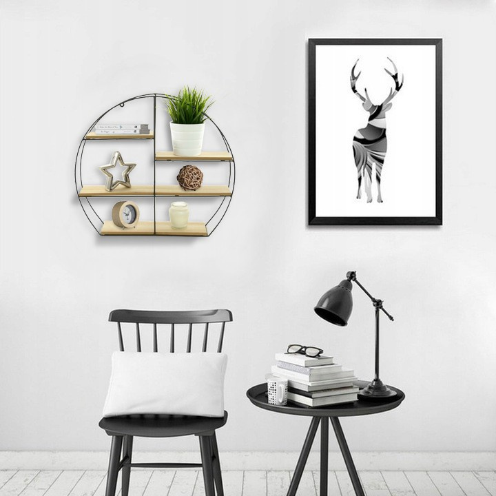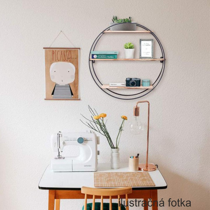 Polička DESIO TYP 2 Materiál: dřevo / kov Provedení: přírodní / černá Rozměry (ŠxHxV): 50x10x42,5 cm Nosnost na celou polici: 10 kg Dodávané v montu.