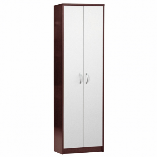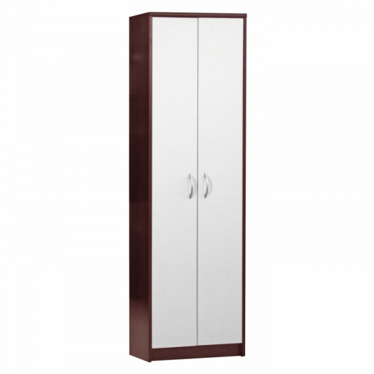 Skříň policová MECKI Materiál: DTD laminovaná Provedení: wenge / bílá Rozměry: ŠxHxV: 55x26x190 cm. Tloušťka materiálu: 16 mm 4-policová Plastové úchytky Dodávané v demontu.