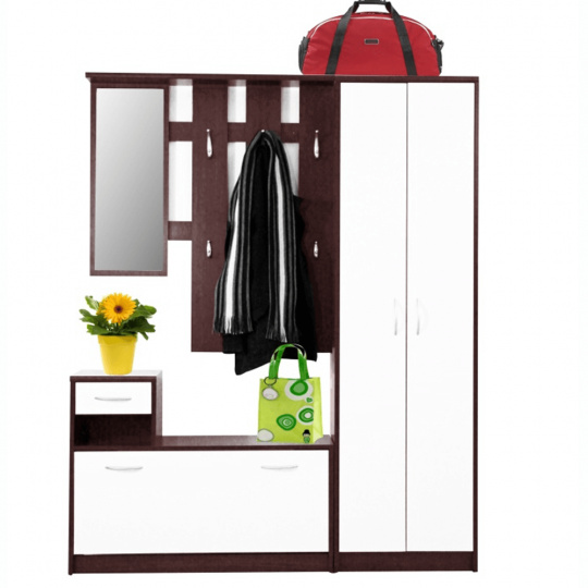 Policová skříň, wenge, bílá MECKI