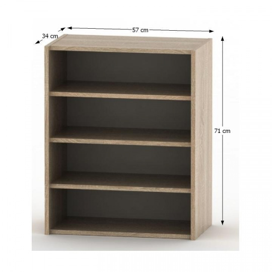 Policový regál TEMPO ASISTENT NEW 013 Materiálové provedení: DTD laminovaná Barevné provedení: dub sonoma Rozměry (ŠxHxV): 57x34x71 cm Tloušťka materiálu: 16 mm Dodávané v demontu.