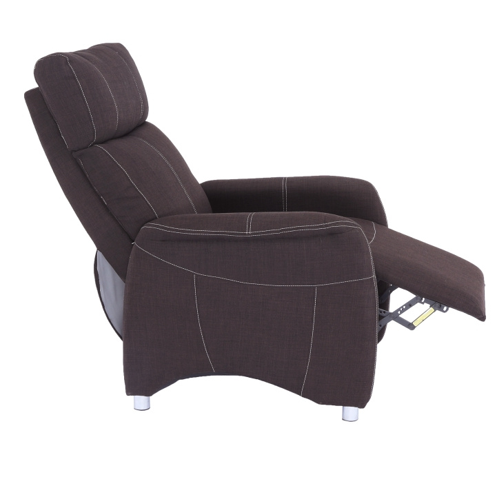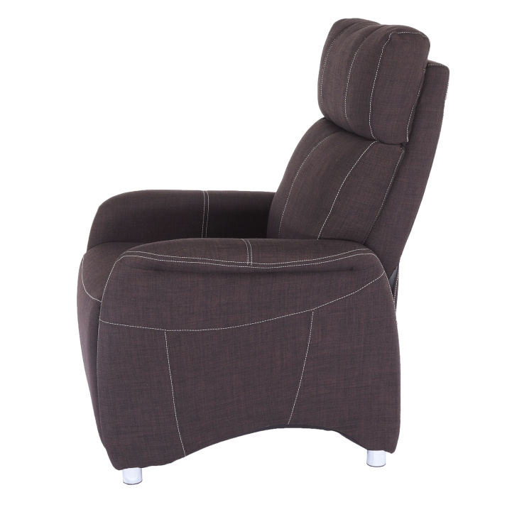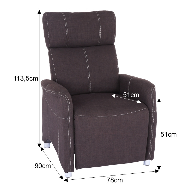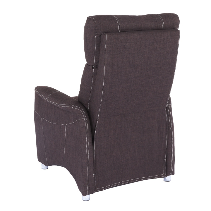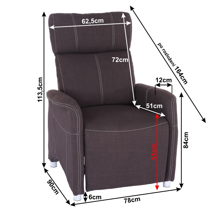 Polohovací TV křeslo s podnoží FOREST materiál: látka Oděruodolnost textilie podle testu Martindale: 90 000 oděrek barva: čokoládová Rozměry (ŠxHxV): 78x90x113,5 / 84 cm, Výška sezení: 51 cm Hloubka sezení: 51 cm Nosnost 150 kg.