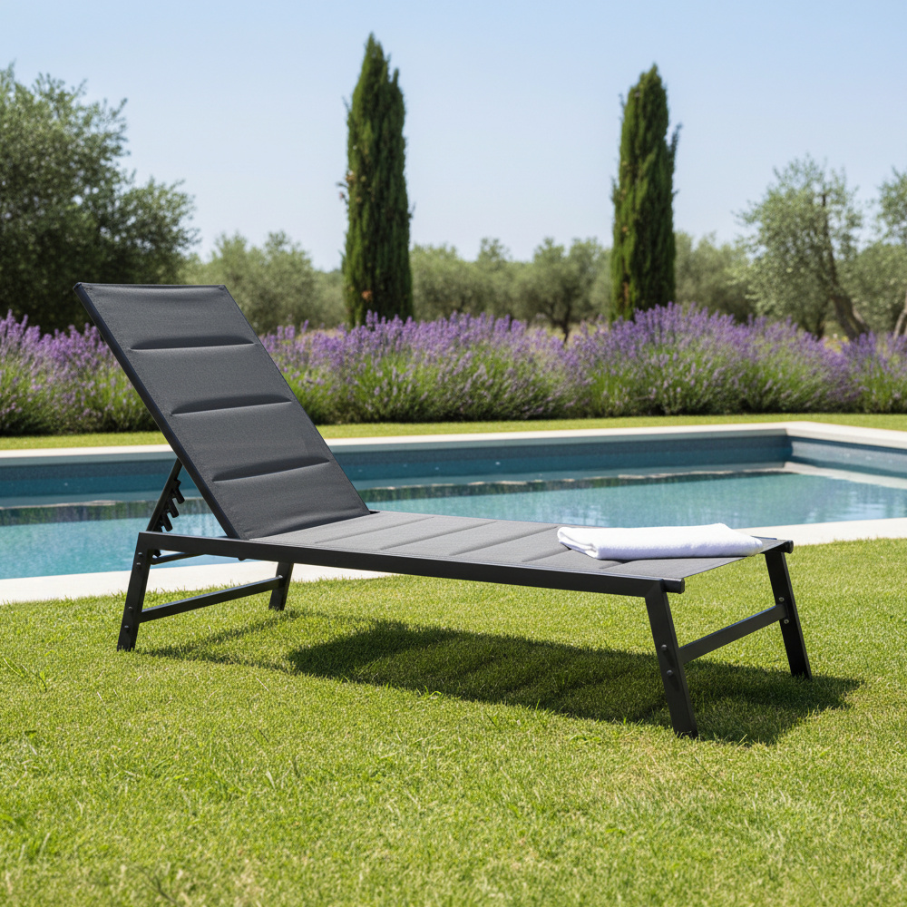 Polohovací zahradní lehátko, černá, LOPEZ