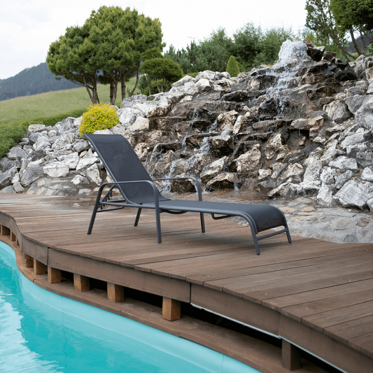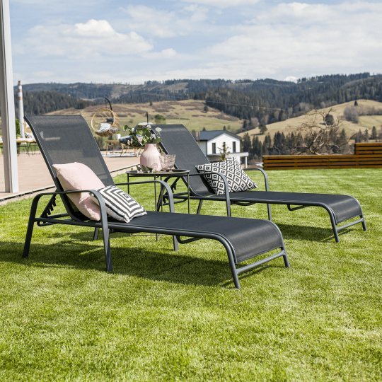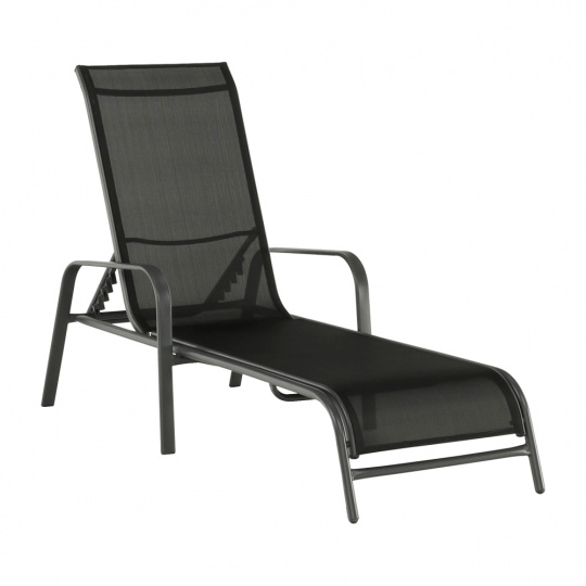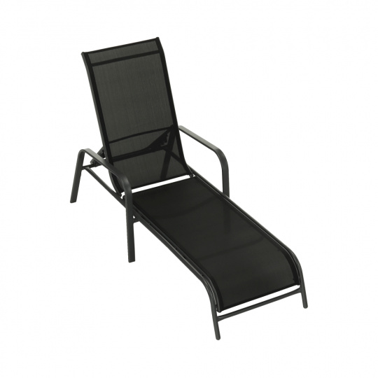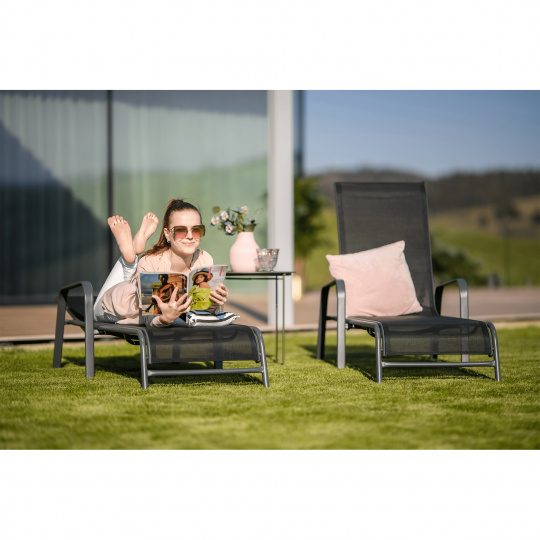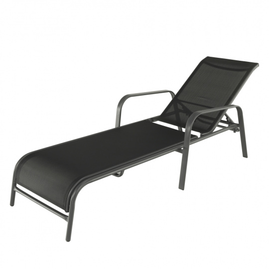 Stohovatelné polohovací zahradní lehátko, černá/šedá, ATREO