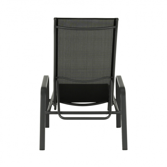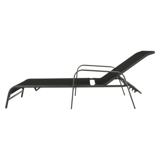 Materiál: látka / kov Provedení: černá / šedá Rozměry (ŠxHxV): 64x161x48 / 100 cm Výška sedu: 28 cm Hloubka sedu: 104 cm Celková hloubka po sklopení: 195 cm Nosnost: 90 kg polohovací Stohovatelné S područkami Dodávané v demontu.