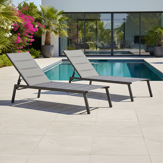 Polohovací zahradní lehátko, černá/šedá, LOPEZ