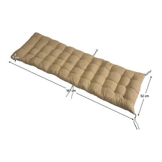 Materiál: látka Oděruodolnost textilie podle testu Martindale: 95 000 oděrů Barva: béžová Rozměry (ŠxHxV): 167x52x5 cm Výplň: polypropylenová bavlna Polštář má popruhy pro připevnění ke lehátku Polštář je vhodný na lehátko, křeslo a lavičku Vhodné do interiéru i exteriéru Dekorativně prošívaný Dodáváno v monte