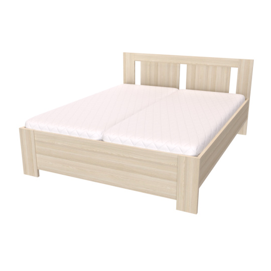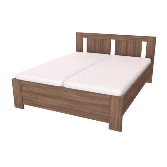 Oblíbené dvoulůžko, které poskytuje zdravý spánek našich zákazníků. Rustikální dvoulůžko s otvory v čele, které dávají možnost odvětrávání přilehlé zdi. Možnost doplnění o výsuvný úložný prostor (zásuvka 3/4). Čelo a nohy dvoulůžka jsou vyrobeny v síle lamina 25mm, bočnice 18 či 25mm. Výběr z několika akčních dekorů. Kvalitní kování a spojovací materiál je bez použití plastových součástek, vyjma ochranných krytek. Zvýšená lehací plocha 50 až 65 cm (včetně matrace o výšce 16 cm). Možnost volby roštu a matrace. Výškově nastavitelné kování do 8 poloh, lze tak rošt umístit do výšky od 32 do 43 cm dle typu matrace. Efektní a praktické ABS hrany. Značkové kování Hettich. Od šířky 120 cm kovová středová stabilizační noha.