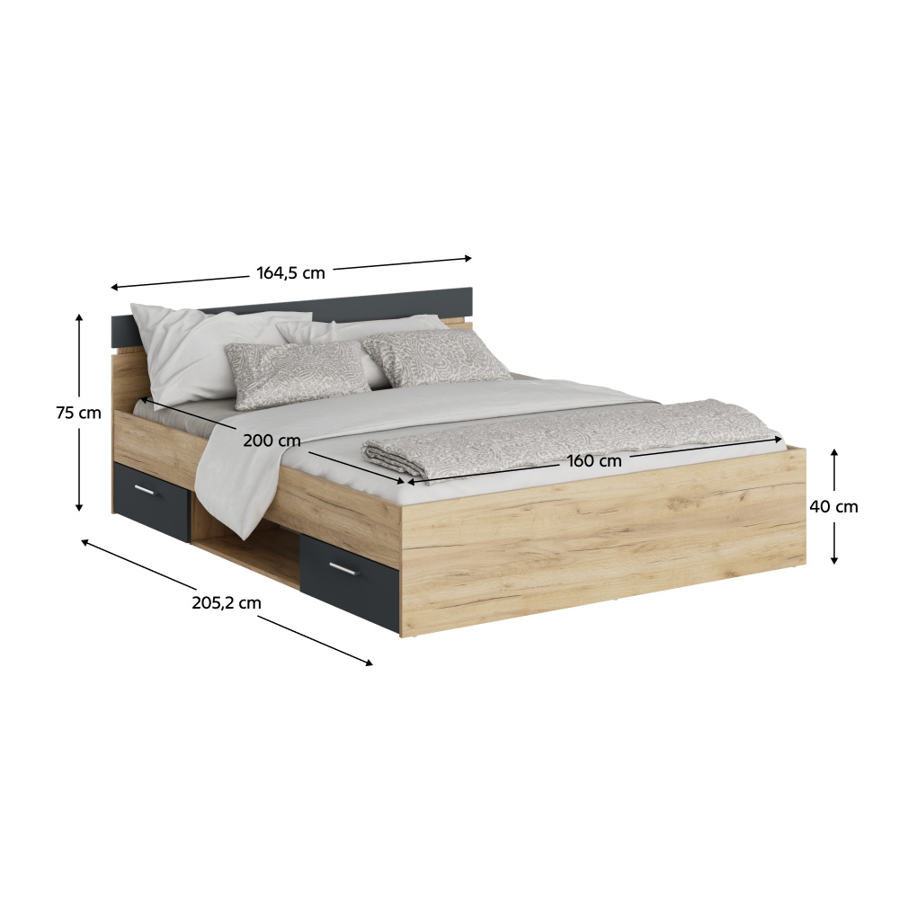 Postel, 160x200, dub artisan/grafit, MICHIGAN NEW