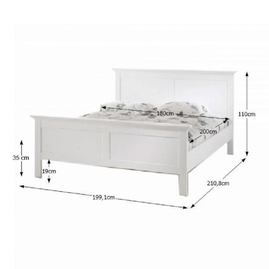 Postel 76703 PARIS Materiál: DTD fóliovaná/MDF lakovaná (ozdobné lišty) Provedení: bílá Rozměry (ŠxHxV): 199,1x210,8x110 cm, Rozměry na spaní: 180x200 cm Tloušťka materiálu boky: 22 mm Tloušťka materiálu čelo: 32 mm Nosnost na jedno lůžko: 100 kg Postel je dodávána bez roštu a matrace, možnost dokoupit z naší nabídky Možnost dokoupení ostatních částí sestavy Dodáváno v demontu