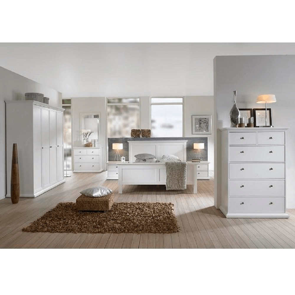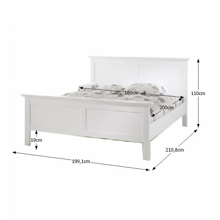 Postel 76703 PARIS Materiál: DTD fóliovaná/MDF lakovaná (ozdobné lišty) Provedení: bílá Rozměry (ŠxHxV): 199,1x210,8x110 cm, Rozměry na spaní: 180x200 cm Tloušťka materiálu boky: 22 mm Tloušťka materiálu čelo: 32 mm Nosnost na jedno lůžko: 100 kg Postel je dodávána bez roštu a matrace, možnost dokoupit z naší nabídky Možnost dokoupení ostatních částí sestavy Dodáváno v demontu