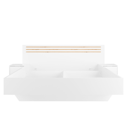 Materiál: DTD laminovaná/MDF/ABS hrany Barva: bílá/dub artisan Rozměry (ŠxHxV): 245,2x204x95,2 cm Plocha na spaní (ŠxD): 160x200 cm Tloušťka materiálu: 1,6 cm Nosnost na osobu: 110 kg Výška po rošt: 34,9 cm 2 noční stolky Nosnost nočního stolku: 20 kg Úložný prostor Zapuštění matrace: 10,8 cm Dodávána bez roštu Doporučujeme zakoupit rošt STELAR z naší nabídky Dodávána bez matrace Možnost dokoupit matraci z naší nabídky Doporučená minimální výška matrace: 15 cm Ozdobné lamely Moderní design Dodáváno v demontu