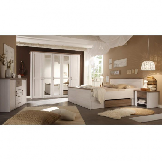 Postel + 2x noční stolek, pinie bílá / dub sonoma truflový, LUMERA
