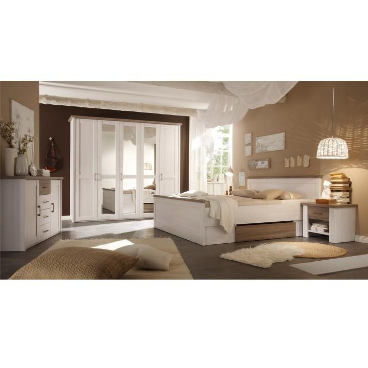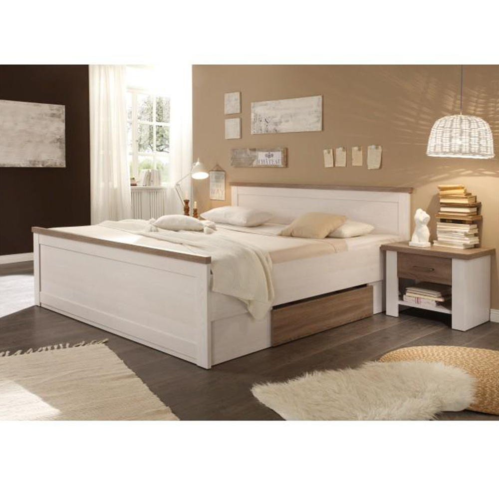 Postel + 2x noční stolek, pinie bílá / dub sonoma truflový, LUMERA