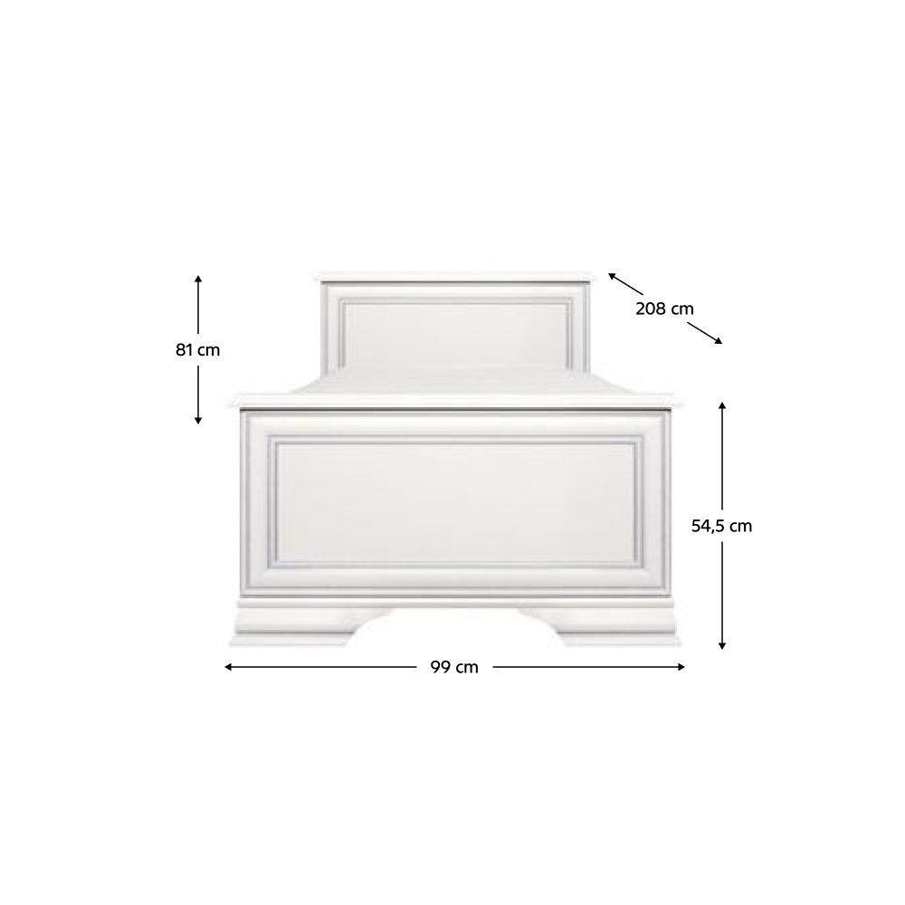 Materiál: DTD laminovaná Barva: alpská bílá Rozměry (ŠxHxV): 99x208x81 cm Plocha na spaní (ŠxD): 90x200 cm Výška bočnice: 22 cm Jednolůžko Tloušťka materiálu: 1,6 cm Na nožičkách Výška nožiček: 8 cm Dodávána bez roštu Doporučujeme zakoupit samonosný rošt KENTAK z naší nabídky Dodávána bez matrace Možnost dokoupit matraci z naší nabídky Doporučená výška matrace: 16 cm Nosnost na osobu: 100 kg Dodáváno v demontu