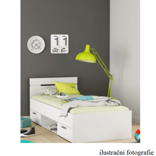 Materiál: DTD laminovaná Rozměry:( ŠxVxH): 94,5x75x205,2 cm Barva: dub sonoma Plocha na spaní (ŠxD): 90x200 cm Výška spaní: 40 cm Výška po rošt: 26 cm Výška matrace: 15 cm Nosnost: 100 kg Dva šuplíky Šuplíky lze namontovat z pravé nebo levé strany S odkládacím prostorem Možnost dokoupit rošt v pevném rámu Možnost dokoupit matraci Dodáváno v demontu
