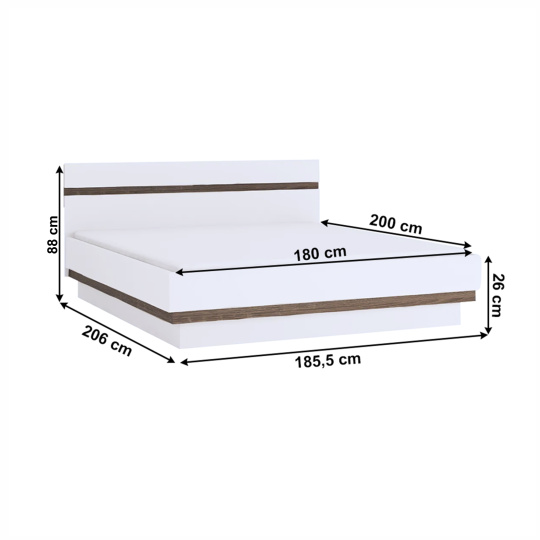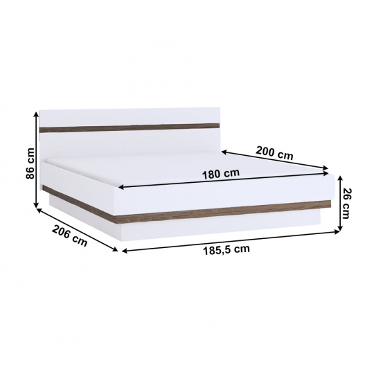 Postel 180, bílá extra vysoký lesk HG/dub sonoma tmavý truflový, LYNATET TYP 93
